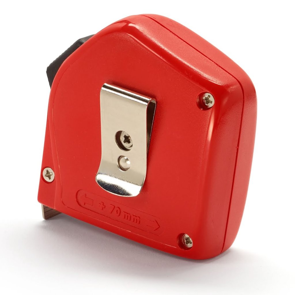 Odolnost metru zajišťuje pouzdro z robustního ABS plastu, které chrání vnitřní mechanismus před nárazy a pády. Samotná ocelová páska žluté barvy je opatřena ochrannou polyesterovou vrstvou, která brání jejímu opotřebení a korozi. Pro bezchybnou čitelnost je milimetrová stupnice nanesena vysoce přesnou inkoustovou technologií. Přesnost měření, ať už vnitřního či vnějšího, je zajištěna samonastavitelným koncovým háčkem. Efektivní brzda navíc umožňuje snadné zafixování pásky v požadované poloze, což usnadňuje práci jednou rukou a zvyšuje vaši produktivitu.