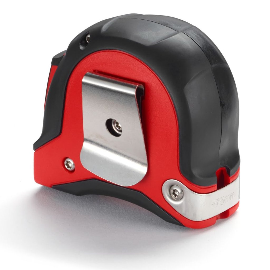 Odolná ocelová páska žluté barvy je opatřena přesnou a dobře čitelnou milimetrovou stupnicí natištěnou z obou stran. Plynulé navíjení, snadno ovladatelná brzda a integrovaný nárazník pro ochranu pásky zajišťují plnou kontrolu, bezpečnost a dlouhou životnost při každodenním používání. Přesné měření od hrany zaručuje pevný koncový háček z nerezové oceli, zesílený přídavnou destičkou.