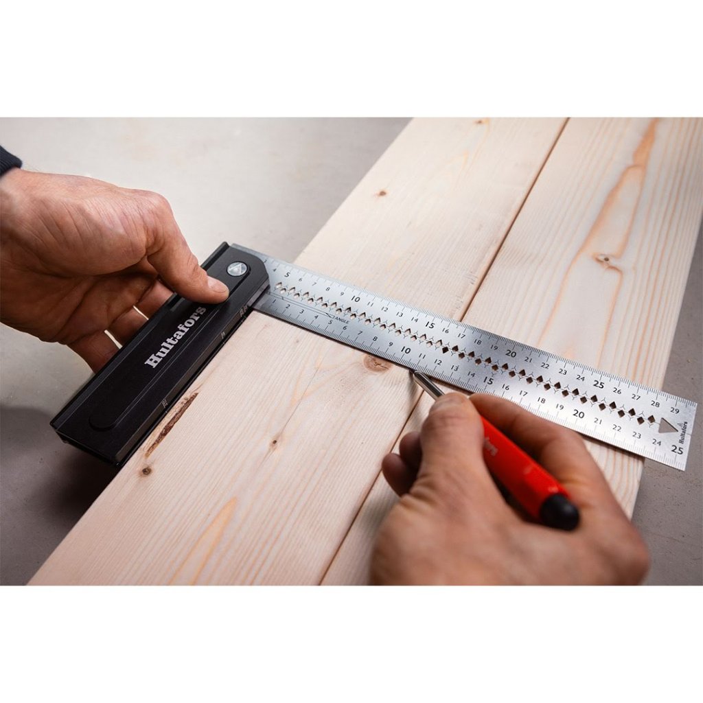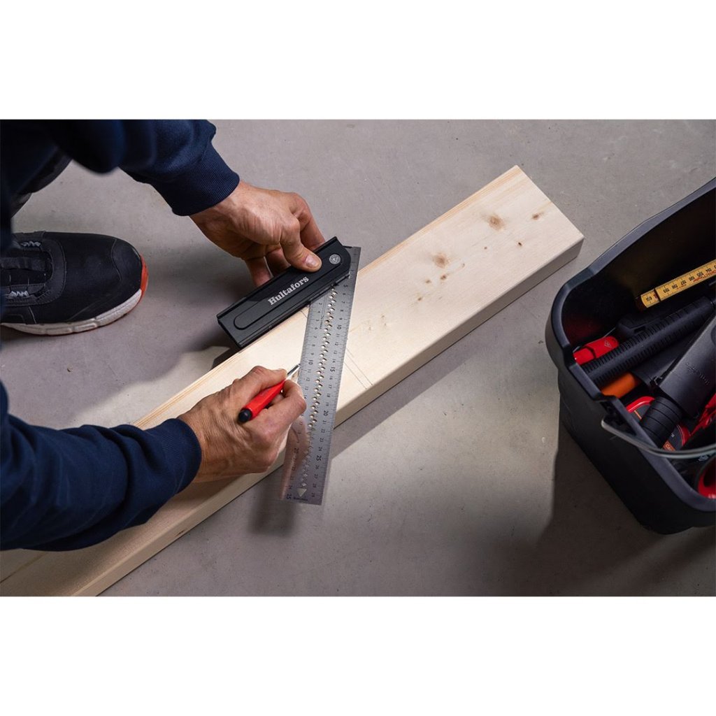 S HULTAFORS QUATTRO 270 nastavitelným úhelníkem zvládnete i ty nejnáročnější úkoly při značení a měření s absolutní jistotou. Tento inovativní nástroj je navržen tak, aby vám usnadnil přesné určování úhlů a rychlé, spolehlivé měření přímo na pracovišti. Patentovaný mechanismus umožňuje přesné nastavení na několik pevných úhlů, takže vždy budete mít správný nástroj po ruce – ať už pracujete se dřevem, kovem nebo dalšími materiály.