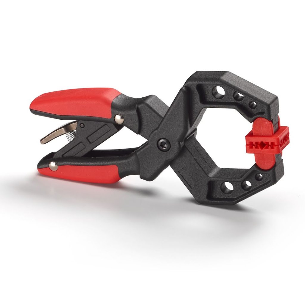 Konstrukce svěrky je vyrobena z lehkého, ale mimořádně odolného nylonu vyztuženého skelnými vlákny, který zaručuje dlouhou životnost. Ergonomicky tvarované dvoukomponentní rukojeti zajišťují pohodlný a bezpečný úchop i při opakovaném použití. Ráčna umožňuje plynulé a přesné nastavení přítlačné síly, zatímco otočné čelisti se dokonale přizpůsobí i nerovným povrchům a chrání citlivé materiály před poškozením.