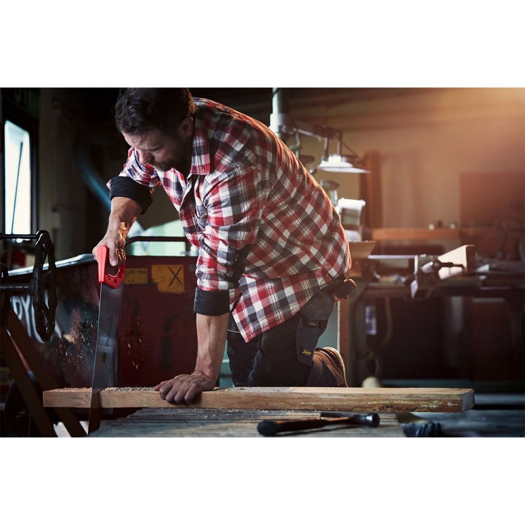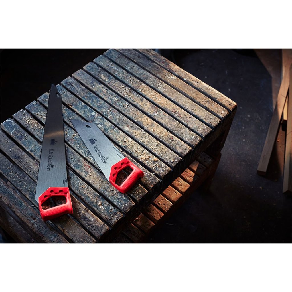 Ruční pila HULTAFORS HBB-22-7 je navržena tak, aby poskytovala spolehlivý výkon a preciznost profesionálům i domácím kutilům. Její ergonomicky tvarovaná rukojeť z odolného ABS plastu zajišťuje pohodlný a bezpečný úchop, což snižuje únavu při delší práci. Pro maximální přesnost je rukojeť vybavena praktickými vodítky, která usnadňují vedení řezů pod úhlem 45° a 90°.