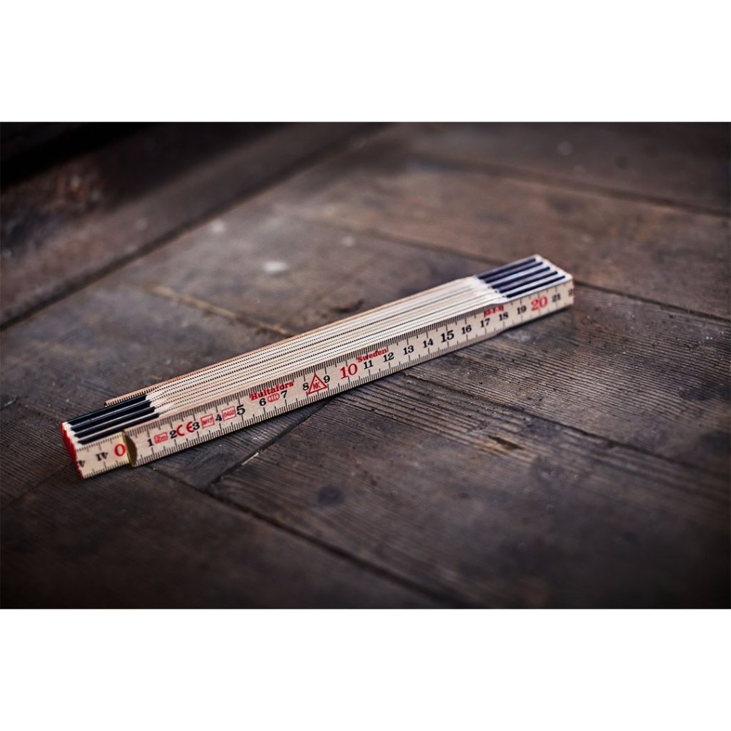 Vyroben z kvalitního břízového dřeva s klouby ze švédské oceli poskytuje mimořádnou flexibilitu a tenké díly pro pohodlnou manipulaci. Metrická stupnice je výrazně vytištěná černě na obou stranách, zatímco červené decimetrové značení urychluje práci. Ochranný vodou ředitelný lak chrání povrch před nečistotami a vlhkostí, takže metr odolá i náročným podmínkám na stavbě.