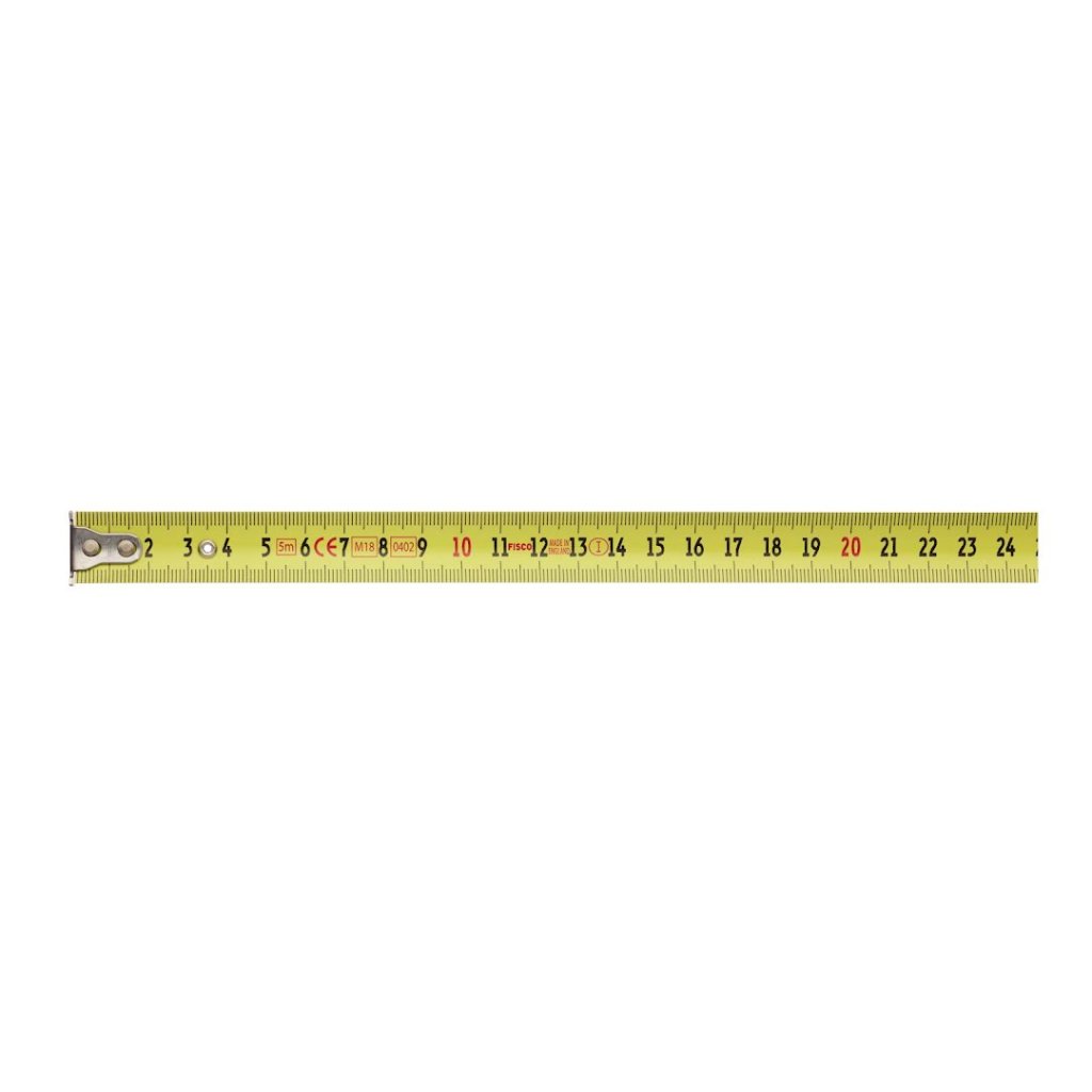 Klíčovým prvkem je žlutá ocelová páska s lakovaným povrchem, který je vysoce odolný proti opotřebení. Oboustranná milimetrová stupnice zajišťuje snadné a rychlé odečítání hodnot z jakéhokoli úhlu. Pro maximální kontrolu je metr vybaven plynulým mechanismem navíjení a silnou, snadno ovladatelnou brzdou. Životnost nástroje dále prodlužuje zesílený koncový hák z nerezové oceli, který odolává poškození.