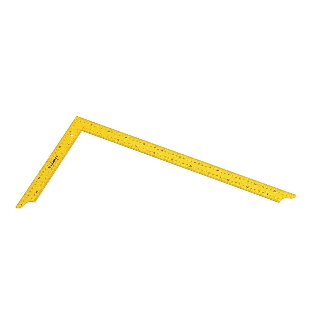Úhelník TMV 60 je vyrobený z pevné oceli s žlutým epoxidovým lakováním, což zajišťuje výjimečnou odolnost proti opotřebení a korozi i v náročných podmínkách. Jasně vytištěné milimetrové stupnice na horní i spodní hraně 60cm ramene umožňují naprosto přesné měření. Tolerance ±1,0 mm/m zaručuje vždy spolehlivé a konzistentní výsledky.