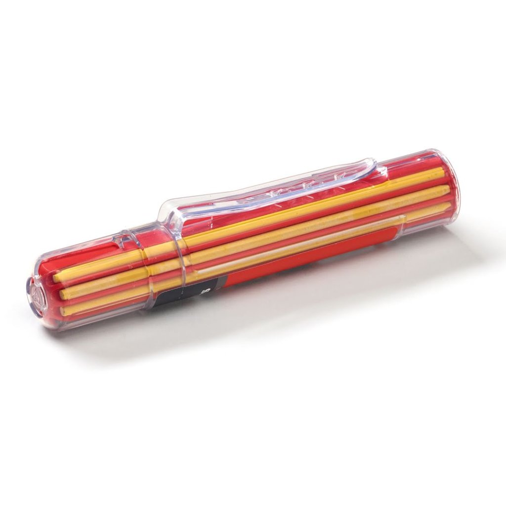 Promyšlený design zásobníku nejen chrání tuhy před zlomením během přepravy, ale také umožňuje jejich pohodlné dávkování po jednom kusu, což omezuje plýtvání a zefektivňuje práci. Díky integrovanému klipu můžete zásobník bezpečně připevnit na kapsu nebo opasek, takže budete mít náhradní náplně vždy okamžitě k dispozici. Každá tuha je optimalizována pro tvorbu jasných a přesných čar na téměř jakémkoli povrchu, od stavby až po jemné truhlářské práce.
