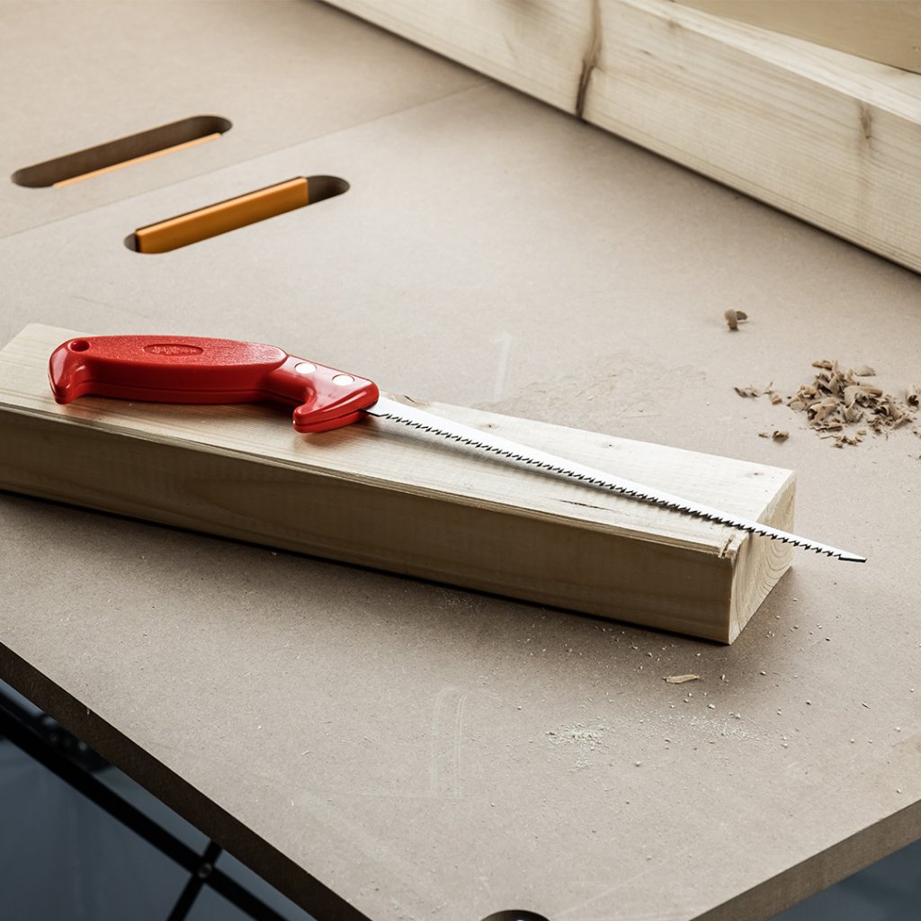 Pilka pro řezání otvorů do dřeva. Díky tenké a nízké čepeli lze touto pilkou řezat oblé tvary. Čepel je kalená a směrem ke špičce se zužuje. Ergonomicky tvarovaná plastová rukojeť se dobře drží a při práci v dlani neklouže.