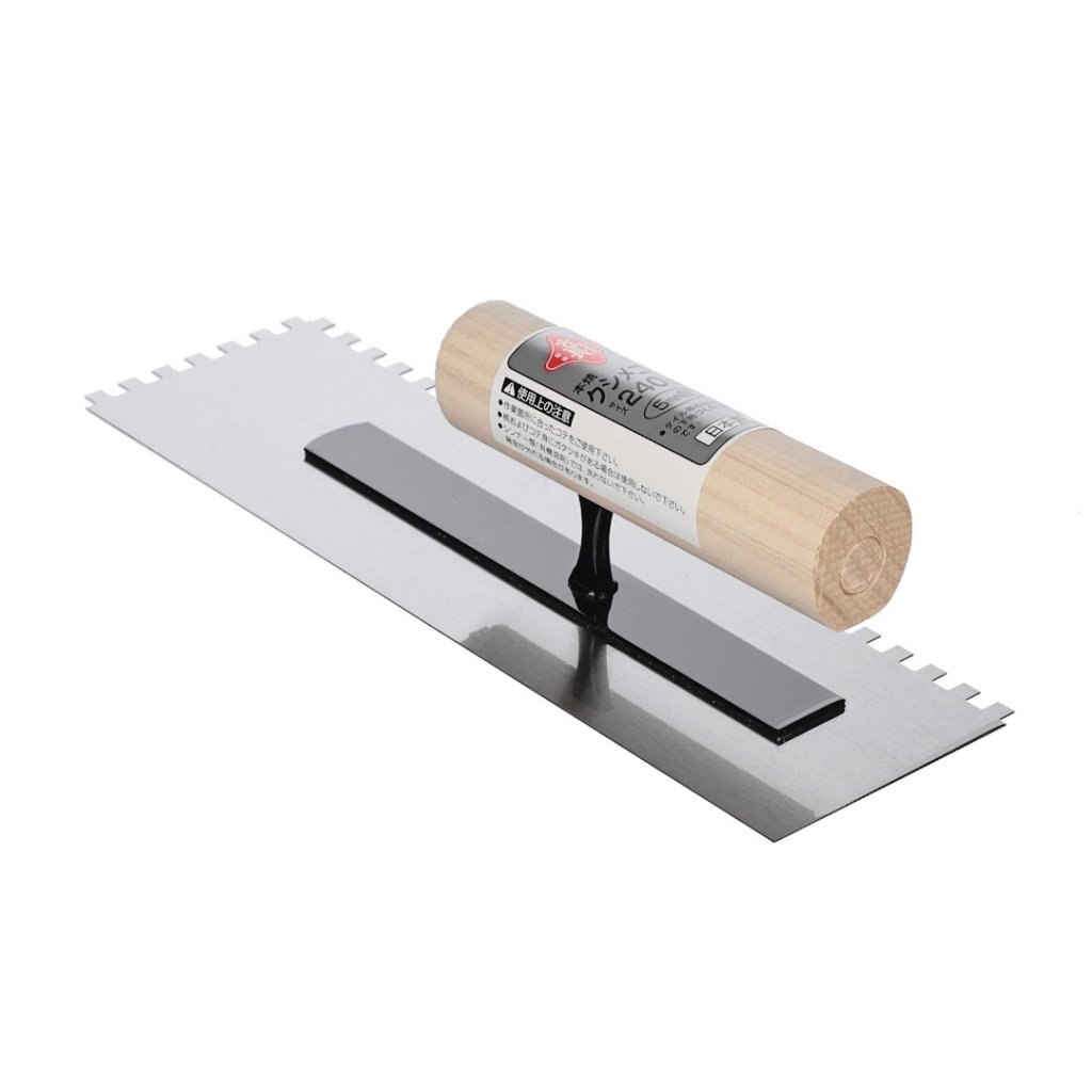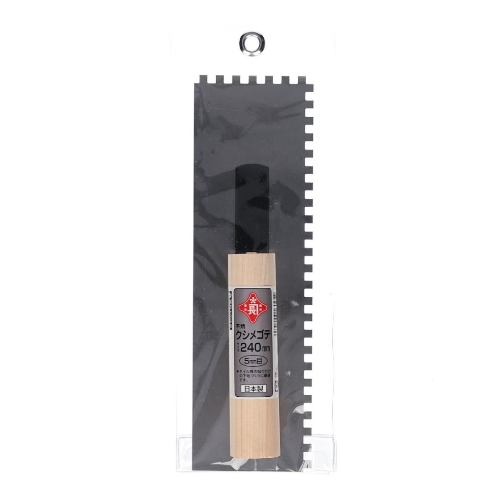Japonská hranatá zubatá stěrka od značky AKAKANECHOU je navržena pro práci s dlaždicemi a vytváření přesných vzorů. Je vyrobena z kalené oceli a nabízí výjimečnou odolnost. Její délka 240 mm a 5 mm zuby ji činí ideální pro detailní a spolehlivé aplikace. Vyrobeno v Japonsku.