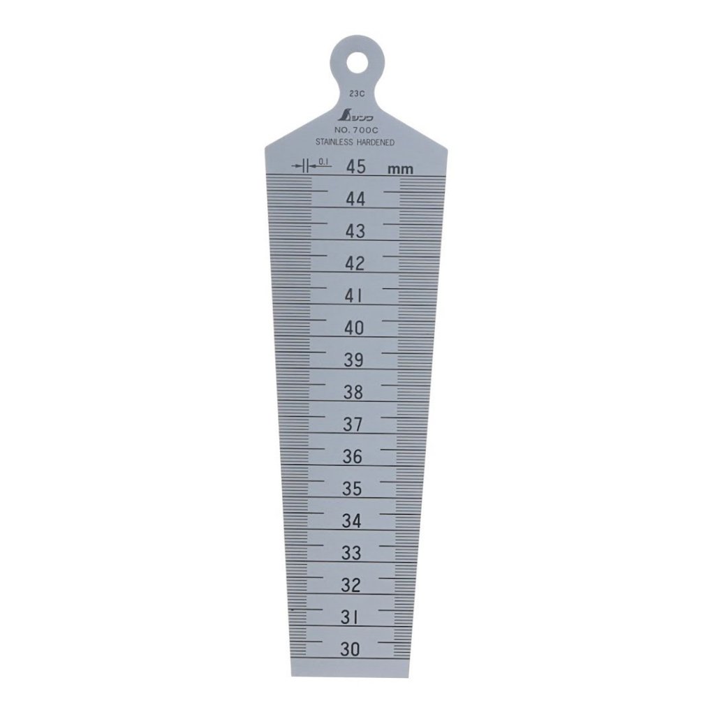 SHINWA kuželová měrka je přesný nástroj navržený pro snadné měření vnitřních průměrů, velikostí otvorů, spár a mezer. Jeho rozsah měření 30-45 mm a přesnost ±0,05 mm ho činí ideálním pro detailní práci. Měřidlo má povrchovou úpravu z tvrdého chromu, což zajišťuje odolnost a odolnost proti opotřebení. Díky tenkému profilu 46 x 160 x 1 mm a lehkému designu 50 g nabízí pohodlí a snadné použití pro profesionály i nadšence do řemesla.