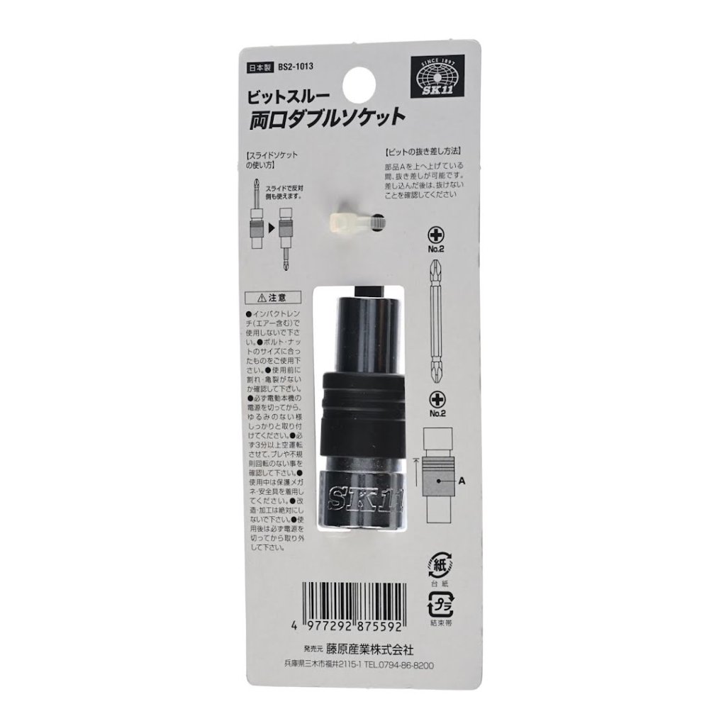 Japonská hlavice SK11, model BS2-1013, je univerzální nástroj navržený pro efektivní instalační práce. Tato dvojitá hlavice pojme šestihranné šrouby a matice o velikosti 10 mm a 13 mm. Má vyměnitelnou hnací hřídel, což umožňuje pokračovat v používání i v případě jejího zlomení. Je kompatibilní s rázovými utahováky a elektrickými šroubováky, a pasuje na šestihranný dřík s průměrem 6,35 mm.