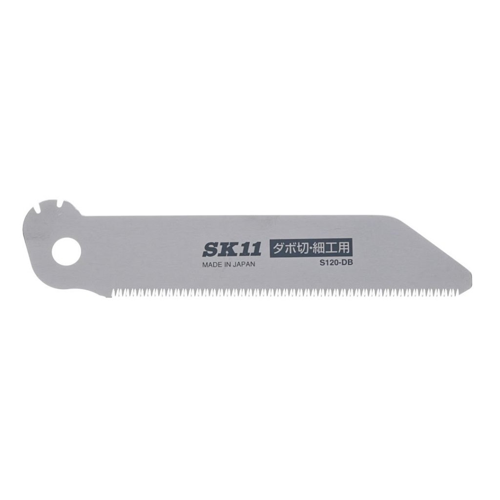 Náhradní pilový list od SK11 pro skládací pilu, model SB120-DB, je precizně zpracovaná náhradní čepel navržená výhradně pro skládací pily série S120. Čepel je vyrobená z odolné vysokouhlíkové oceli s povrchovou úpravou neelektrolytickým niklováním, odolává rzi a zajišťuje hladké řezání. Její 0,4 mm tenká čepel poskytuje čistý řez, ideální pro jemnou práci, jako je řezání kolíků a bambusu, aniž by došlo k poškození povrchu dřeva. S délkou čepele 120 mm a hmotností pouhých 11 g je perfektní pro detailní a přesné úkoly při práci se dřevem.