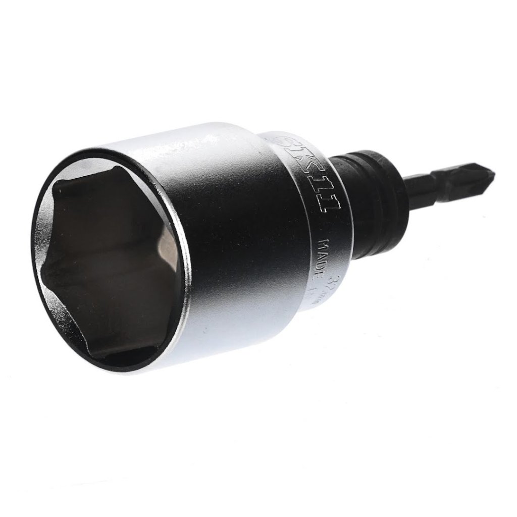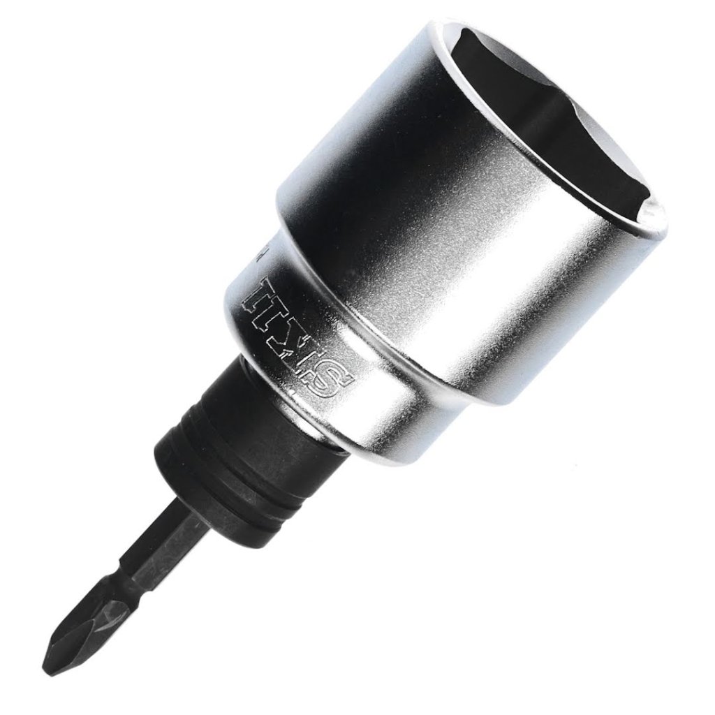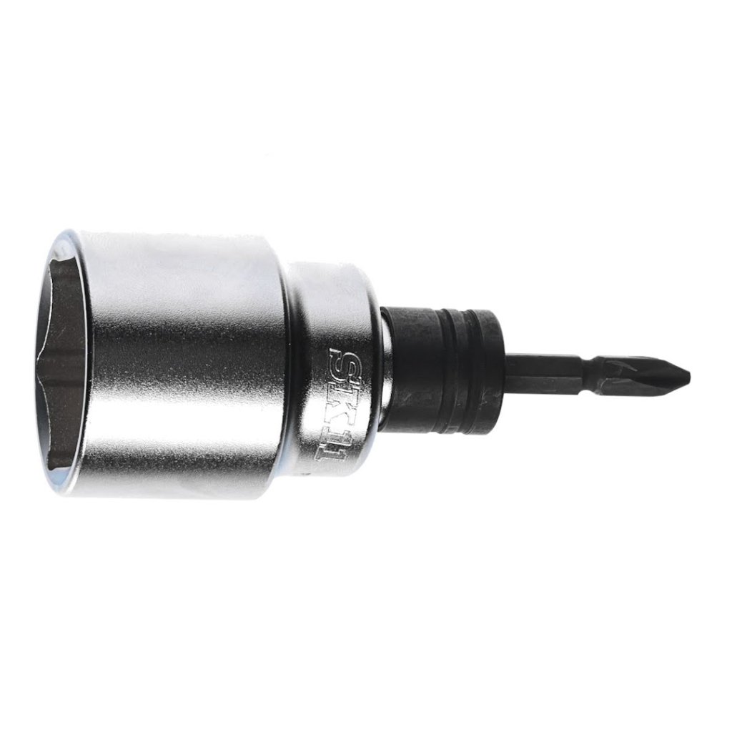 Průchozí nástrčná hlavice SK11 je univerzální nástroj pro utahování šroubů a matic na ocelových nosnících a sloupech. Díky své kompaktní velikosti 44 x 105 x 44 mm a hmotnosti 225 g je ideální pro profesionály v oblasti lešení. Odolný design umožňuje snadnou obnovu pomocí standardních bitů, pokud se hřídel zlomí pod velkým zatížením. Má šestihranný tvar pro zvýšenou odolnost a lze ji vybavit adaptérem proti pádu pro bezpečnou práci ve výškách.