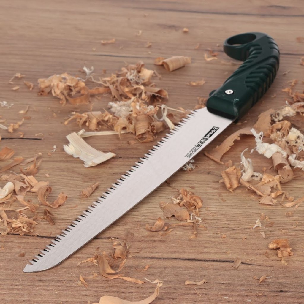 Prořezávací pilka E-VALUE, model ESY-240S, je univerzální prořezávací pila s vyměnitelnou čepelí, navržená pro snadné použití. S délkou čepele 240 mm a tloušťkou 0,9 mm je vhodná pro řezání čerstvého dřeva a obecného řeziva. Čepel je zajištěna šroubovým upevněním a je ošetřena niklováním. Ergonomická rukojeť umožňuje efektivní aplikaci síly během práce a háček na opasek pojme opasky široké až 50 mm pro snadné přenášení.
