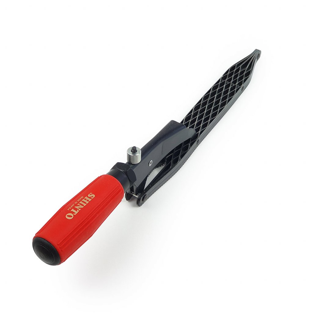 Jedinečná konstrukce této japonské rašple na dřevo se skládá z 10 kalených klikatých pilových listů snýtovaných dohromady, které tvoří širokou řeznou plochu. Největší výhoda této unikátní rašple je její dutá konstrukce, která eliminuje ucpávání. Tyto rašple jsou sice vyrobeny pro opracování dřeva, ale jsou vhodné i pro měkké kovy (např. hliníku či mosazi), plasty nebo sádru. Rašple Shinto umožňuje odstraňovat materiál vysokou rychlostí. Zuby se rozšiřují až k okraji, což výrazně usnadňuje práci v rozích. Rašple je vybavena protiskluzovou ergonomickou rukojetí s dvojitou strukturou z plastu a elastomeru. Vyrobeno v Japonsku.