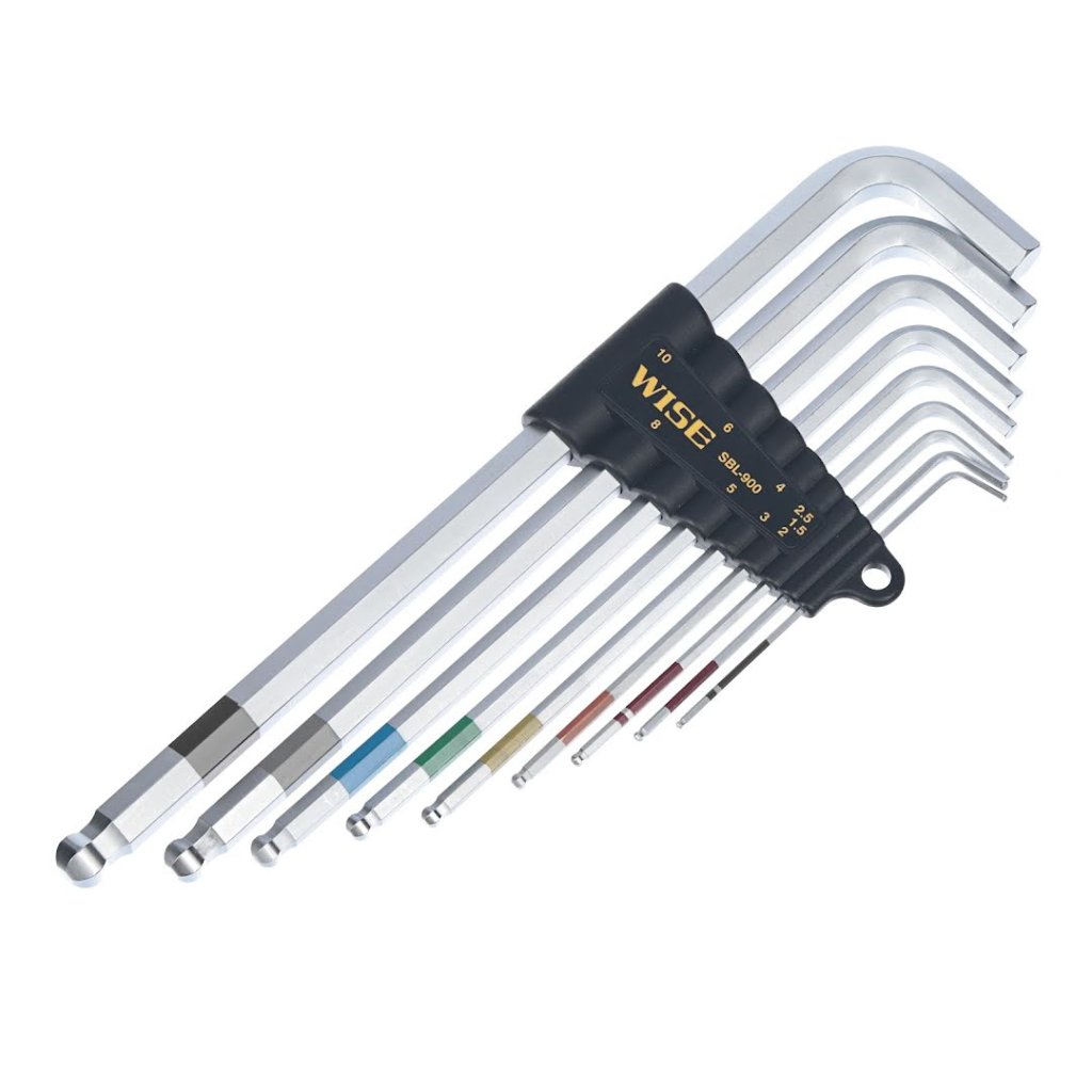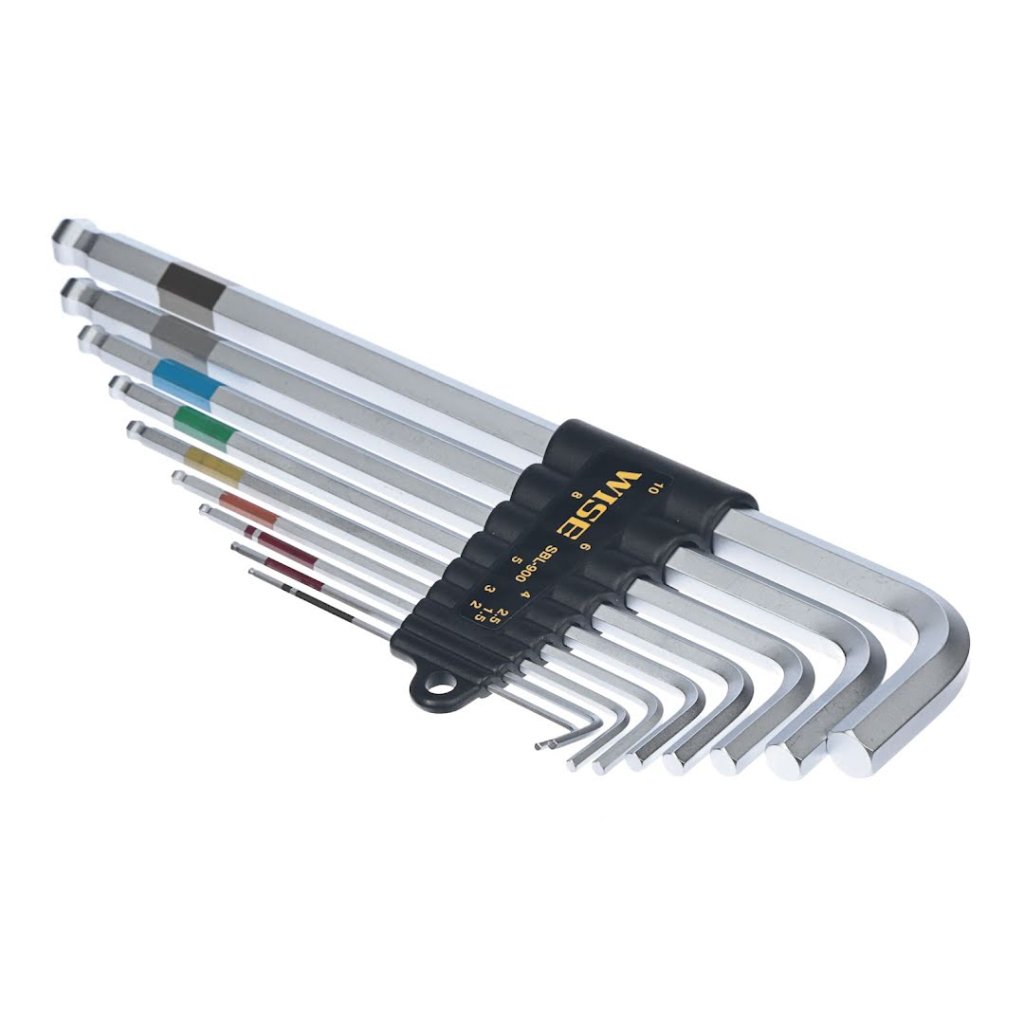 Sada imbusových klíčů s kulovým koncem WISE je navržena pro přesnost a odolnost. Tato sada je ideální pro utahování imbusových šroubů, je vyrobena z tepelně zpracované oceli pro maximální tvrdost a zvýšenou odolnost proti lámání a speciální chromování. Kulový konec umožňuje utahování pod úhlem a extra dlouhá délka klíče zpřístupňuje těžko dostupné oblasti. Sada obsahuje velikosti 1,5, 2, 2,5, 3, 4, 5, 6, 8 a 10 mm, umístěné v kompaktním pouzdře.
