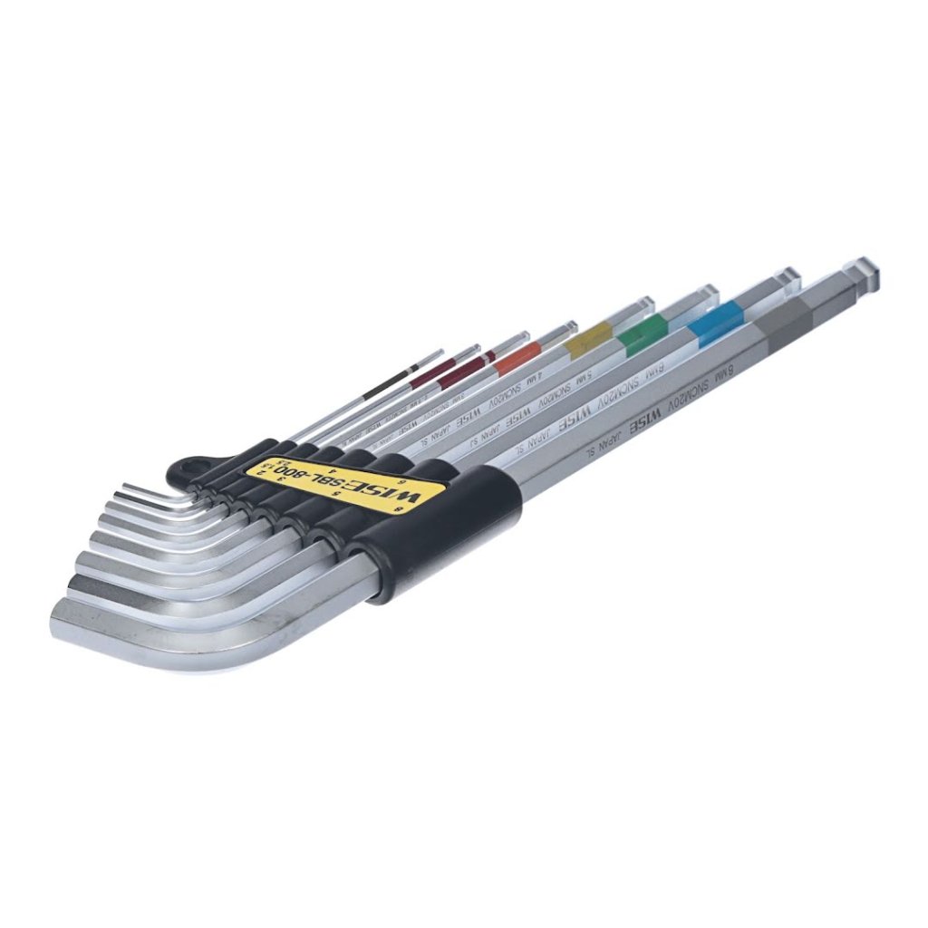 Sada imbusových klíčů s kulovým koncem WISE je navržena pro přesnost a odolnost. Tato sada je ideální pro utahování imbusových šroubů, je vyrobena z tepelně zpracované oceli pro maximální tvrdost a zvýšenou odolnost proti lámání a speciální chromování. Kulový konec umožňuje utahování pod úhlem, což zpřístupňuje těžko přístupné oblasti. Sada obsahuje velikosti 1,5, 2, 2,5, 3, 4, 5, 6 a 8 mm, umístěné v kompaktním pouzdře.