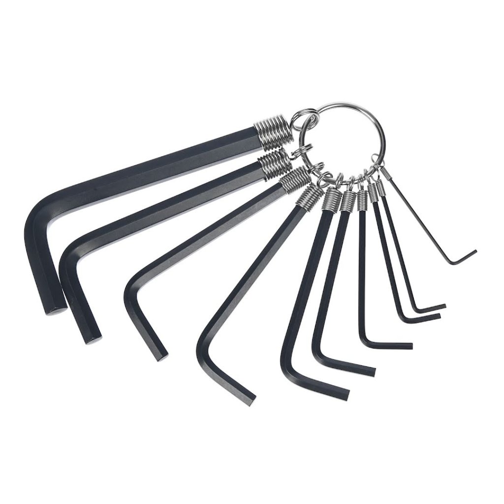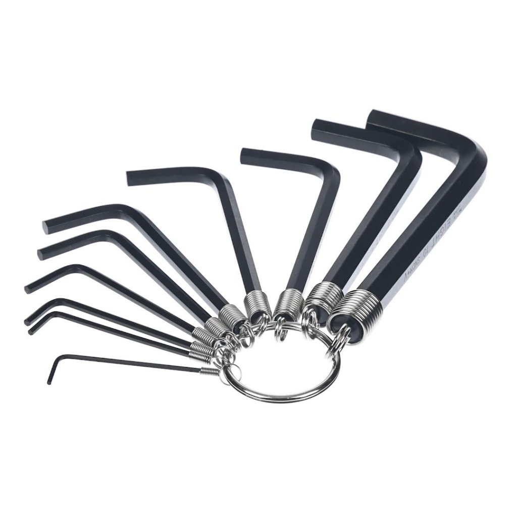 Sada imbusových klíčů SK11 No.2 je komplexní sada nástrojů navržená pro precizní práci s šestihrannými šrouby. Tato sada obsahuje deset imbusových klíčů v metrických velikostech, vyrobených podle standardů JIS, což zajišťuje kompatibilitu a efektivitu při utahování a povolování imbusových šroubů a matic. Kroužkový držák umožňuje snadné přenášení a organizaci.