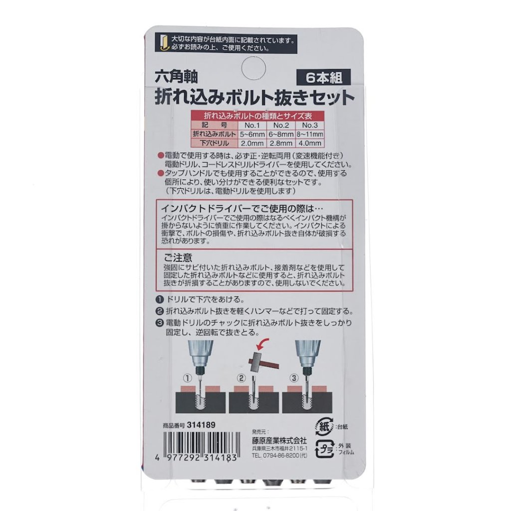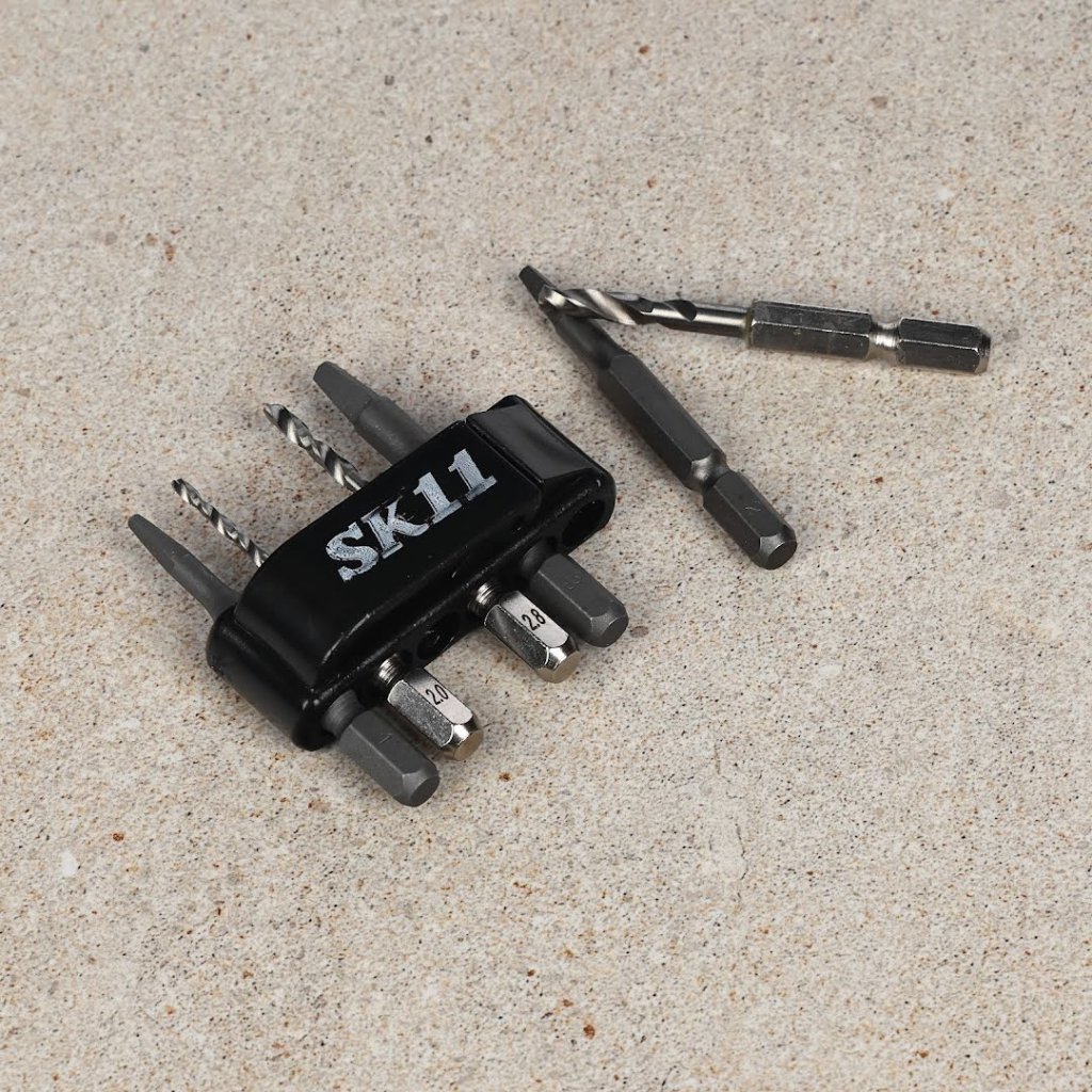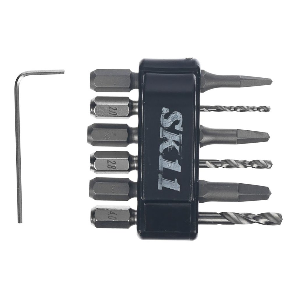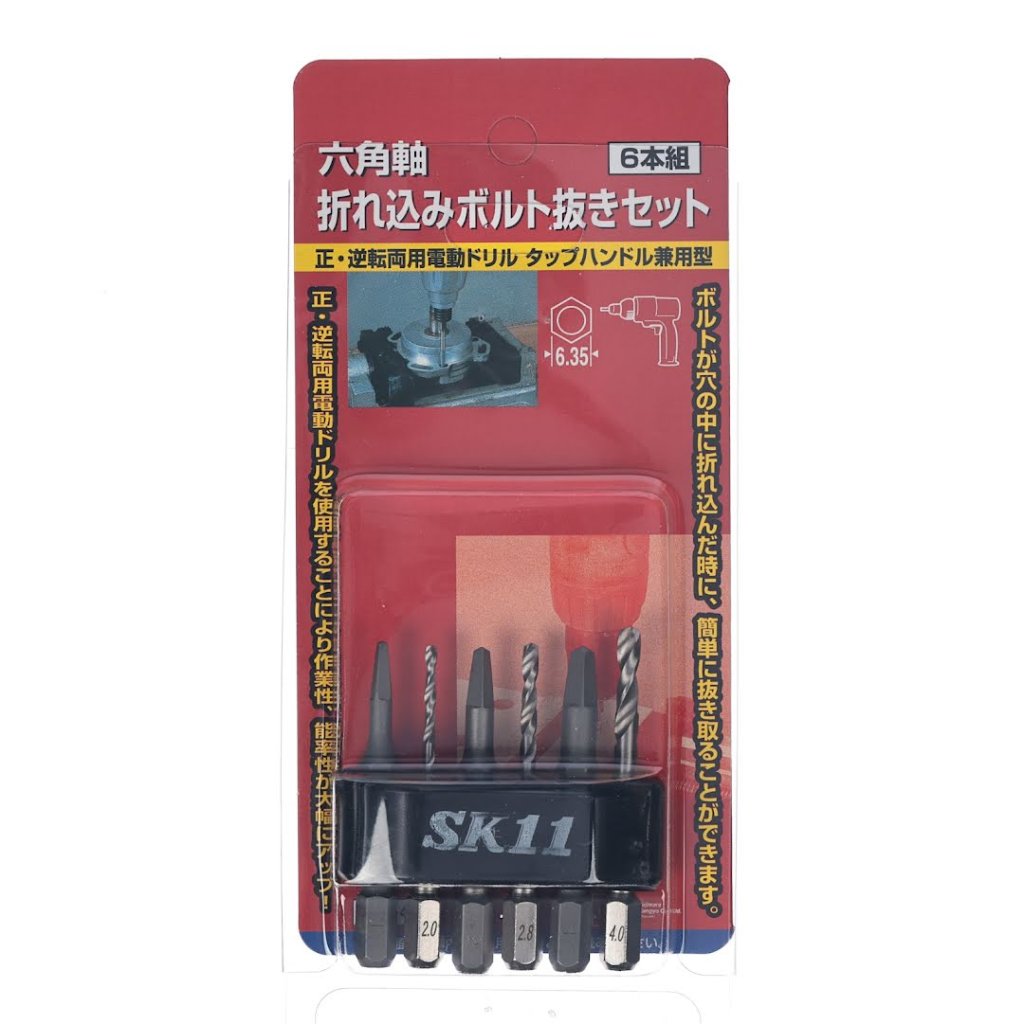 Sada vytahováků a vrtáků SK11 je navržena pro snadné odstraňování stržených a poškozených šroubů vložených do otvorů. Tato všestranná sada obsahuje šest kusů s hexagonálními stopkami o rozměru 6,35 mm, což zajišťuje kompatibilitu jak s elektrickými vrtačkami s pravým a levým chodem, tak i s ručními vratidly. Každý bit je přizpůsoben pro specifické velikosti šroubů, od 5 mm do 11 mm, a obsahuje odpovídající pilotní vrtáky pro efektivní práci.