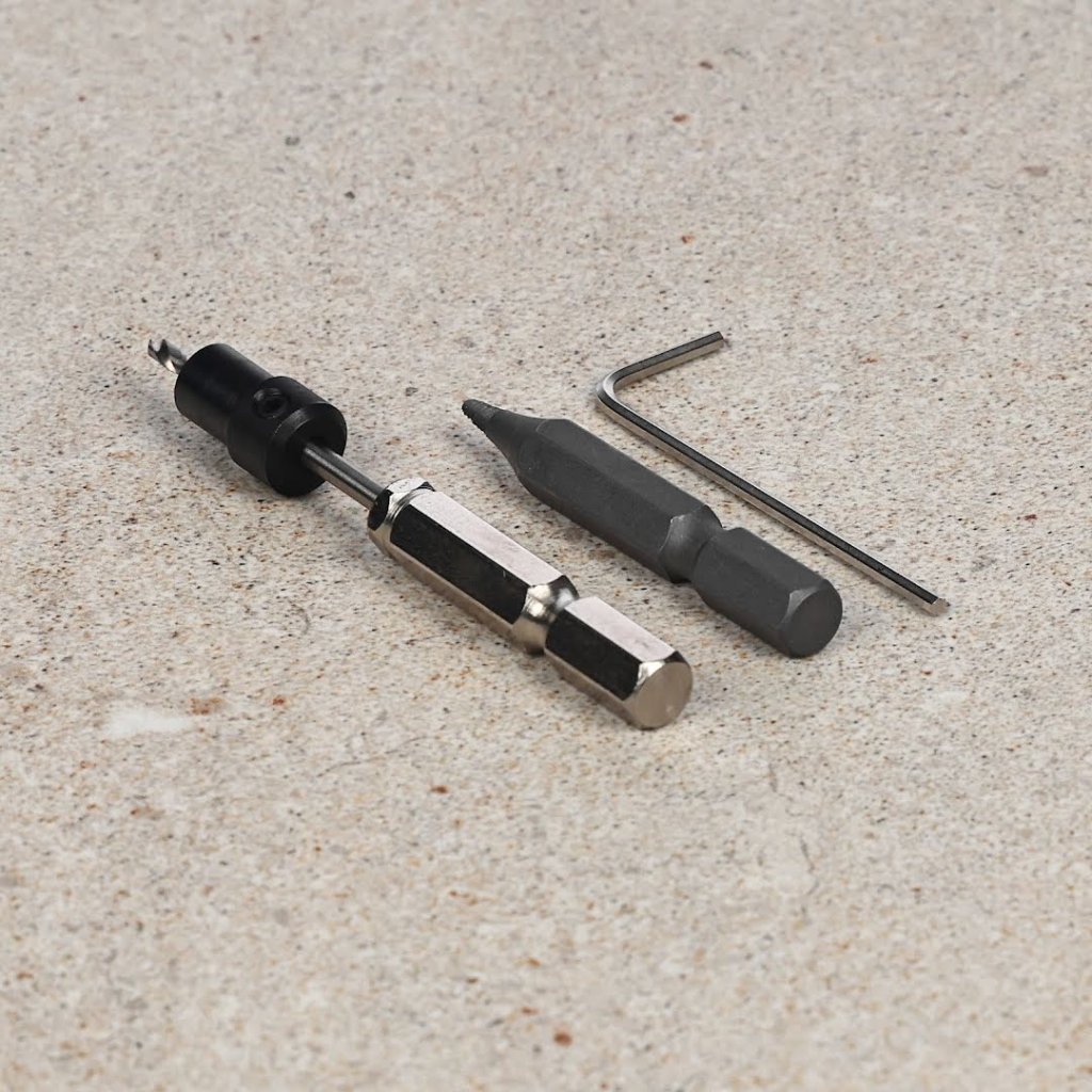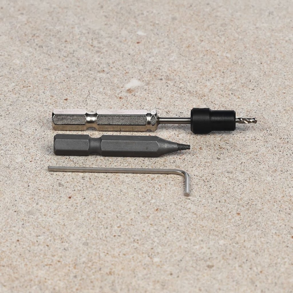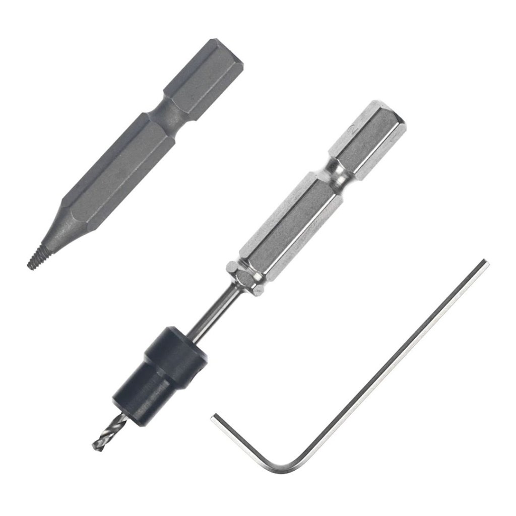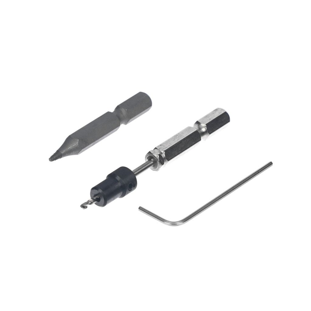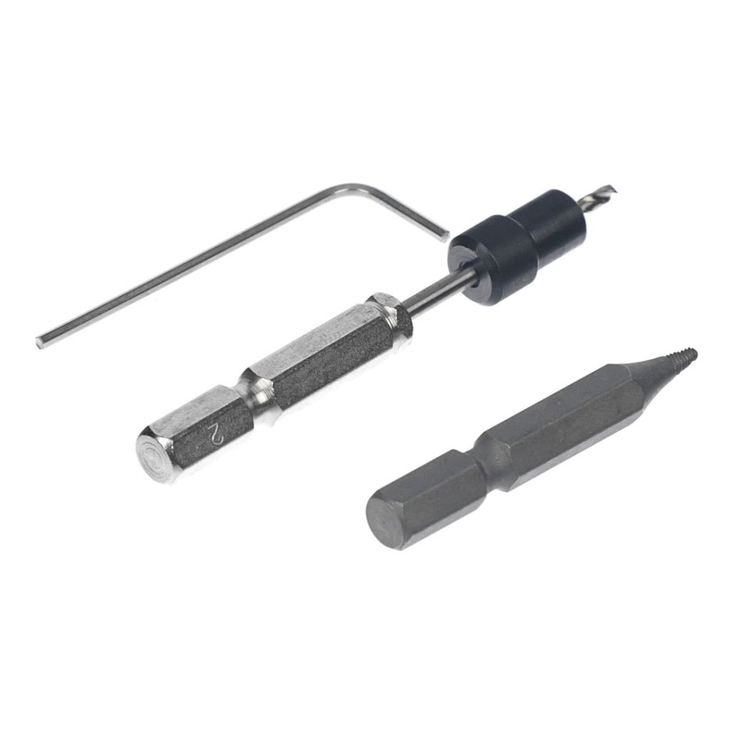 Extraktor stržených šroubů v sadě SK11, model No.3, je navržen pro odstraňování poškozených šroubů, konkrétně šroubů ve dřevě. Vyznačuje se duálním mechanismem, který umožňuje vytvořit pilotní otvor s přední rotací a vytáhnout šroub s zpětnou rotací. Vhodný pro šrouby s průměrem 3.5-4.5 mm a délkou 32-40 mm, tento bit pracuje se standardními reverzibilními elektrickými vrtačkami, ale není kompatibilní s nerezovými nebo tepelně zpracovanými šrouby.