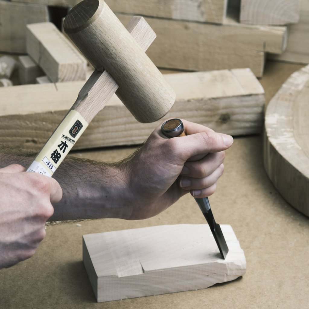 Dřevěná palička od japonské značky RYUMA z dubového dřeva. Vhodné pro truhláře, řezbáře, rámaře a řemeslníky pracující nejen se dřevem. Japonská ruční výroba. Nepoužívejte na beton, kámen či zatloukání kovových hřebíků.
