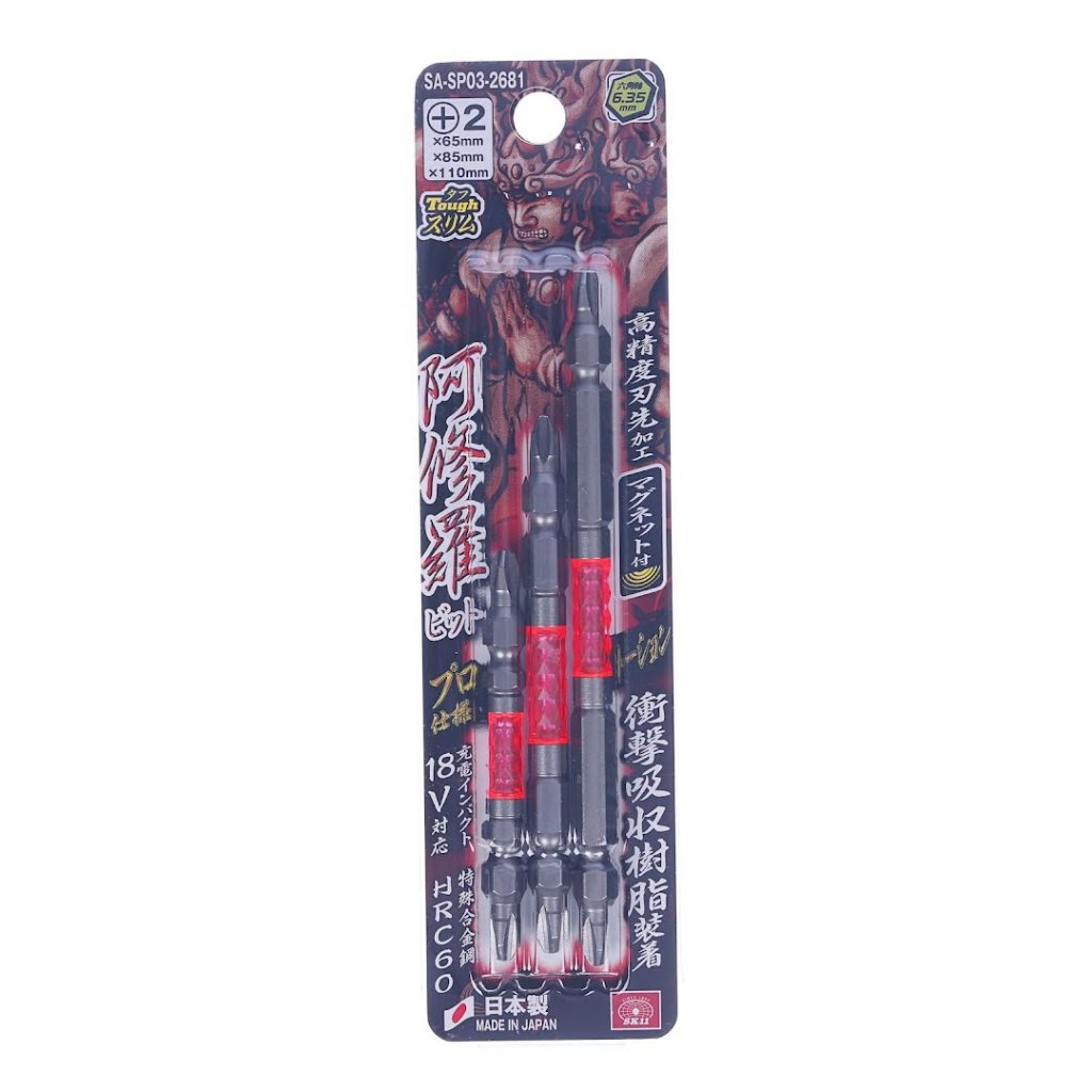Oboustranné křížové bity SK11, jsou navrženy pro maximální odolnost. Díky své tvrdosti se hodí zejména pro 18V aku šroubováky a zajišťují dlouhodobé použití. Bit má průměr upínacího šestihranu 6,35 mm s odolným štíhlým hrotem a tvrdostí HRC60. Navíc je vybaven magnetickým hrotem pro pohodlí a má nápadnou stříbrno-červenou barvu pro snadnou identifikaci. Tento produkt představuje vysokou kvalitu japonského řemesla, což z něj činí spolehlivou volbu pro profesionální i domácí použití.