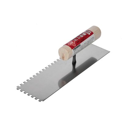 Japonská zubatá stěrka značky MIDORI KANECHO s čtvercovými zuby o velikosti 15 mm zuby a délkou ostří 255 mm, zajišťuje snadnou přípravu materiálu pro pokládku dlaždic....