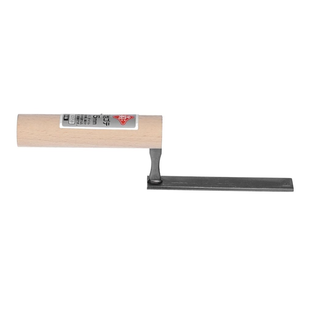 Japonská stěrka od značky AKAKANECHOU s celkovou délkou 240 mm a 5 mm zuby pro přesné pokládání dlaždic. Vyrobeno v Japonsku.