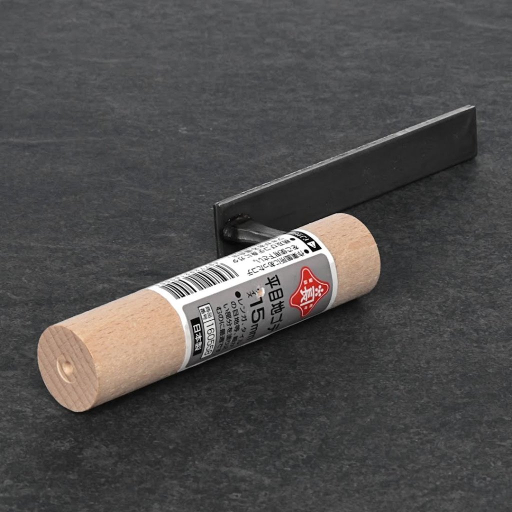 Japonské zubaté hladítko značky AKAKANECHOU má 3 mm čtvercové zářezy pro precizní práci s dlaždicemi. Vyrobeno v Japonsku.