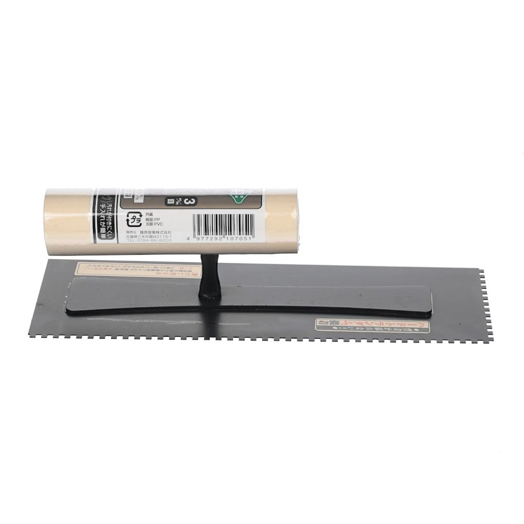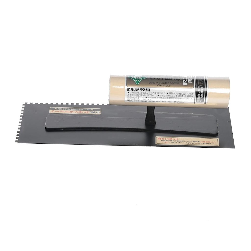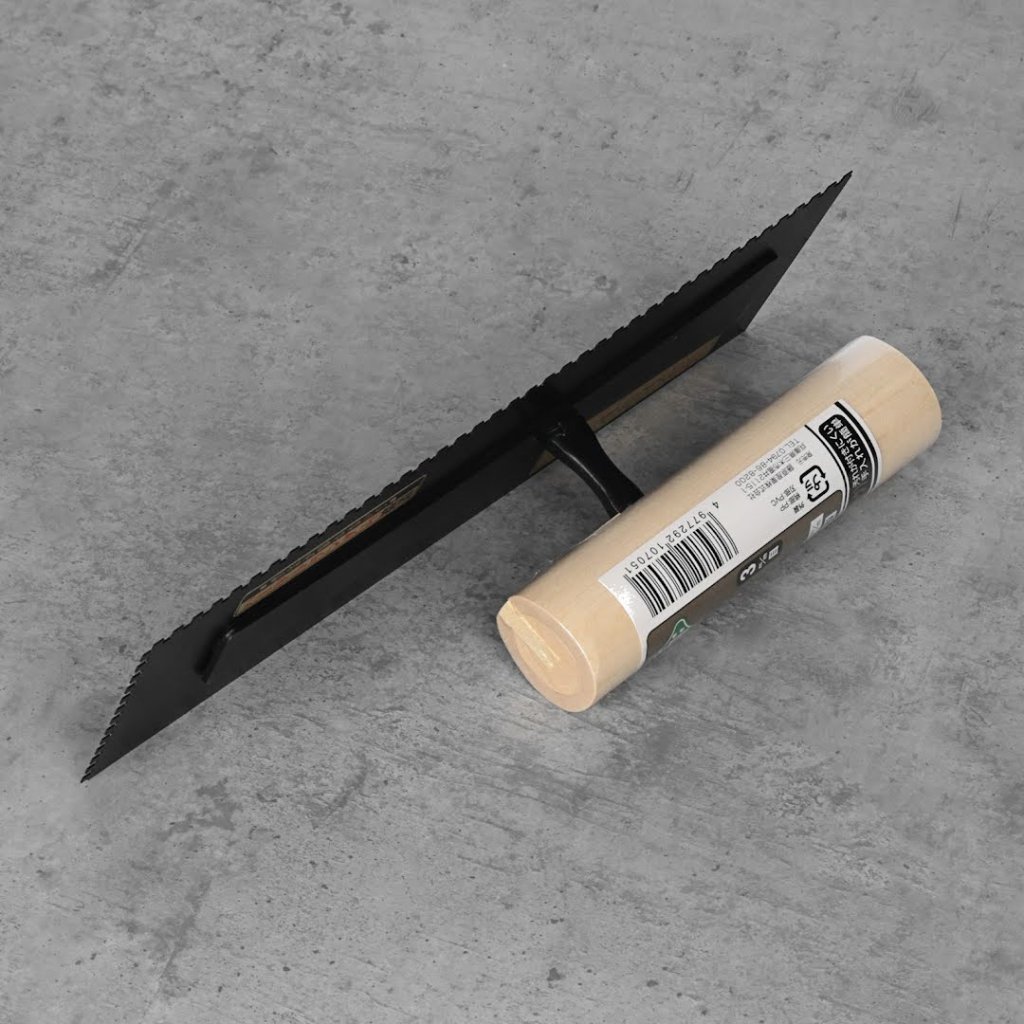 Japonské hladítko MIDORI KANECHO je navrženo pro efektivní nanášení lepidla před pokládkou dlaždic. S velikostí zářezu 3 mm a fluorovou povrchovou úpravou čepele tato stěrka zajišťuje vynikající uvolnění materiálu a snadnou údržbu. Zadní deska je pevně připevněna speciálním lepidlem, což ji činí odolnou vůči poškození rozpouštědly, zatímco vyvážený design rovnoměrně distribuuje tlak a opotřebení.