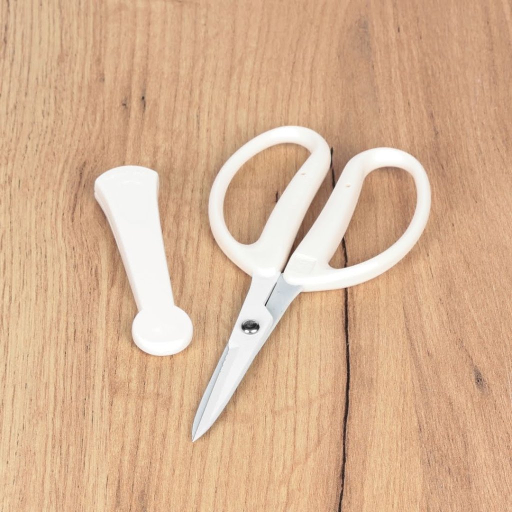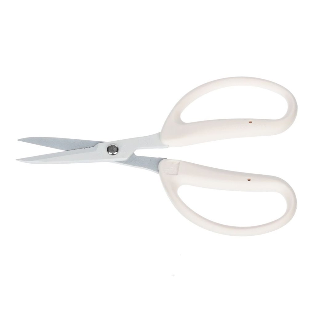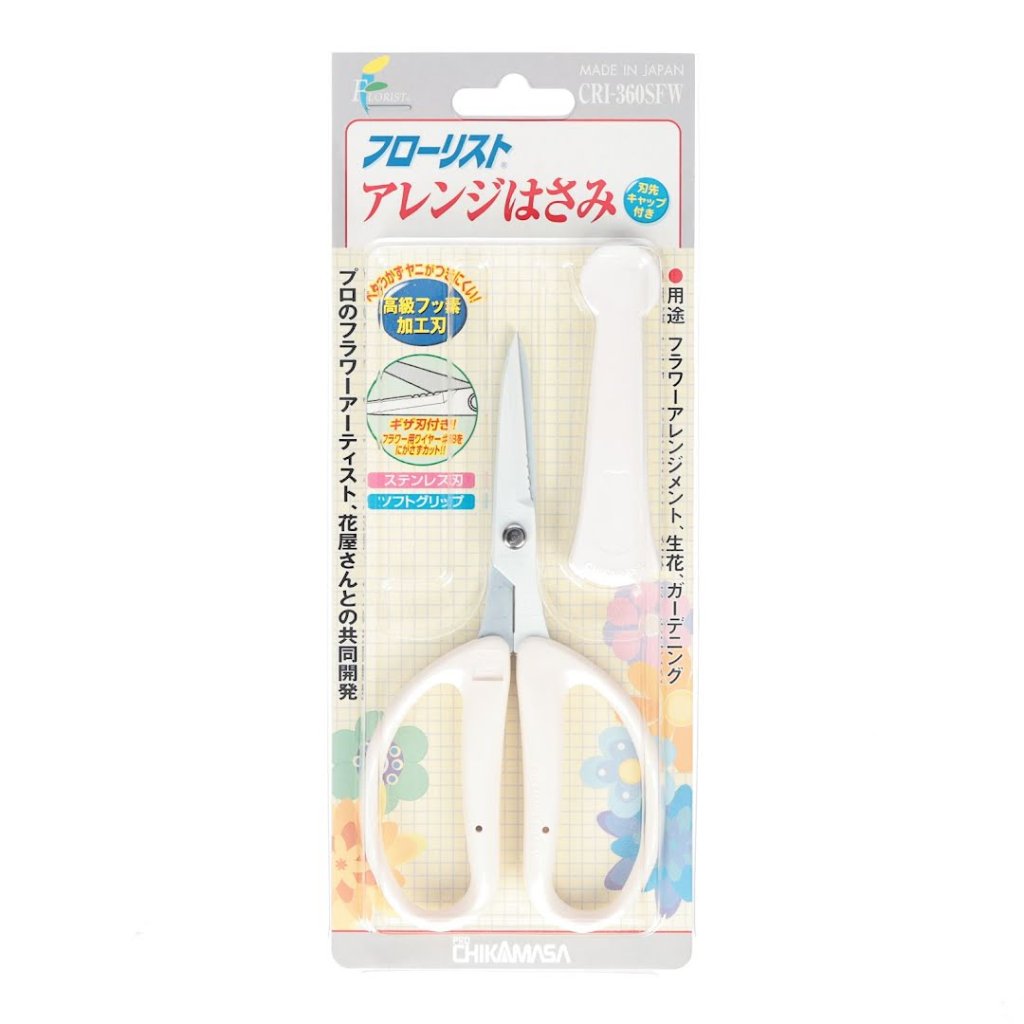 Floristické nůžky na složité květinové aranžmá CHIKAMASA, CRI-360SFW, jsou speciálně navrženy pro květinová aranžmá a úpravy rostlin. Tyto nůžky jsou vybaveny čepelemi z nerezové oceli s fluorovou vrstvou, které odolávají vodě, rzi a zabraňují tak usazování mízy a pryskyřice. Díky funkci stříhání drátu na základně čepele mohou snadno stříhat květinový drát. Měří 160 mm na délku a váží jen 60 g.