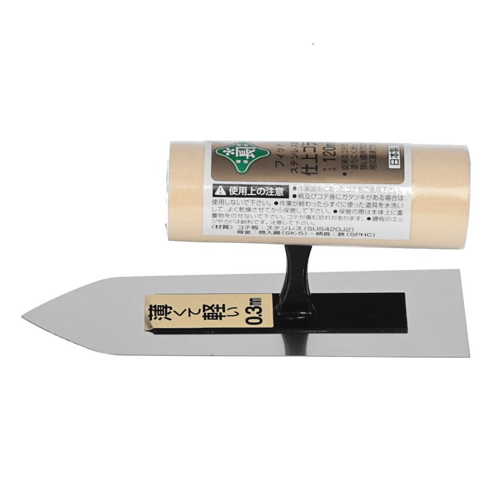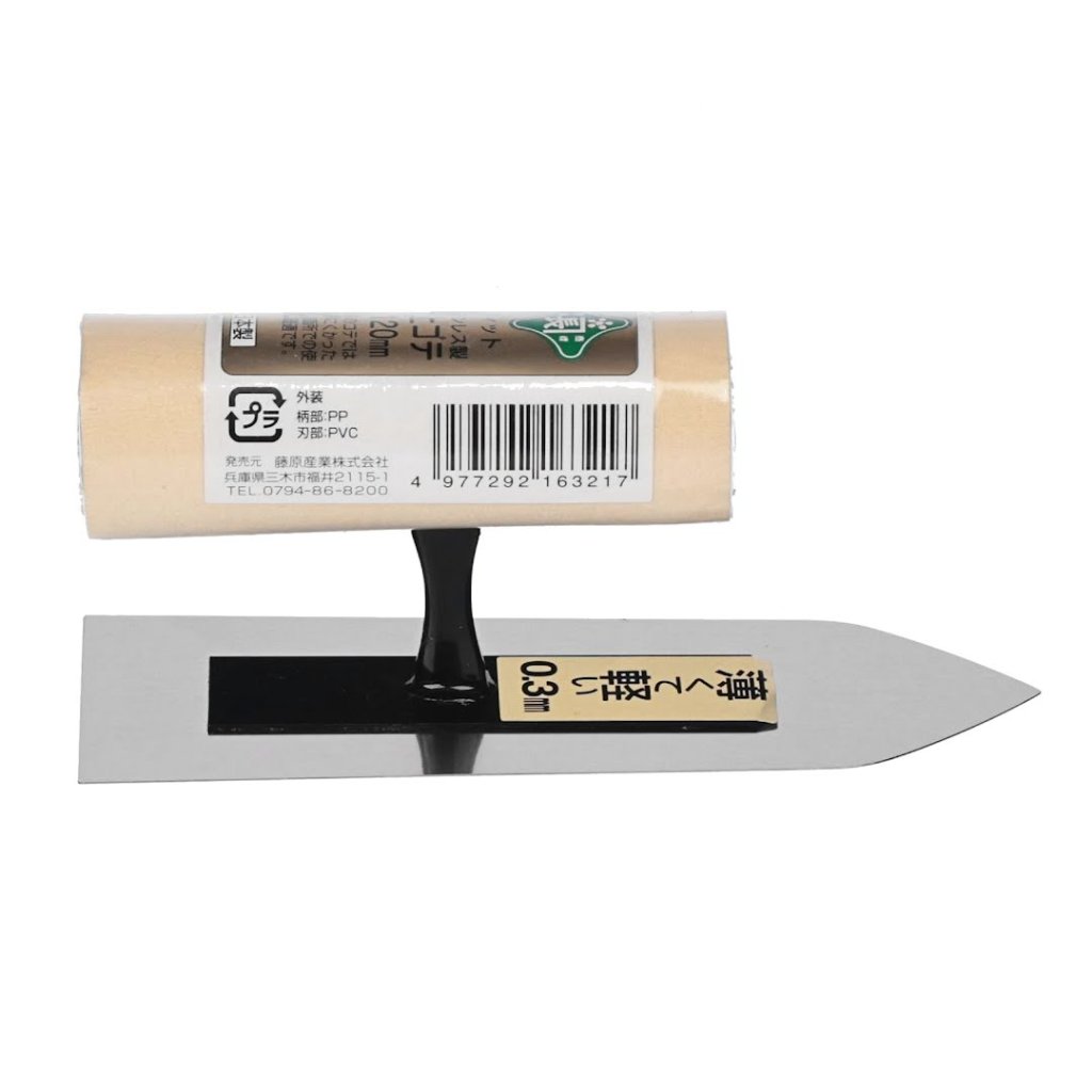 Japonské hladítko MIDORI KANECHO je všestranný nástroj navržený pro precizní aplikaci v úzkých prostorách. Vyrobeno z nerezové oceli odolné proti korozi, je snadno čistitelné organickými rozpouštědly, jako jsou ředidla. Měří 120 mm a má tloušťku čepele 0,3 mm, tato lžíce je lehká, váží 60 g, což z ní činí ideální volbu pro jemné dokončovací práce.