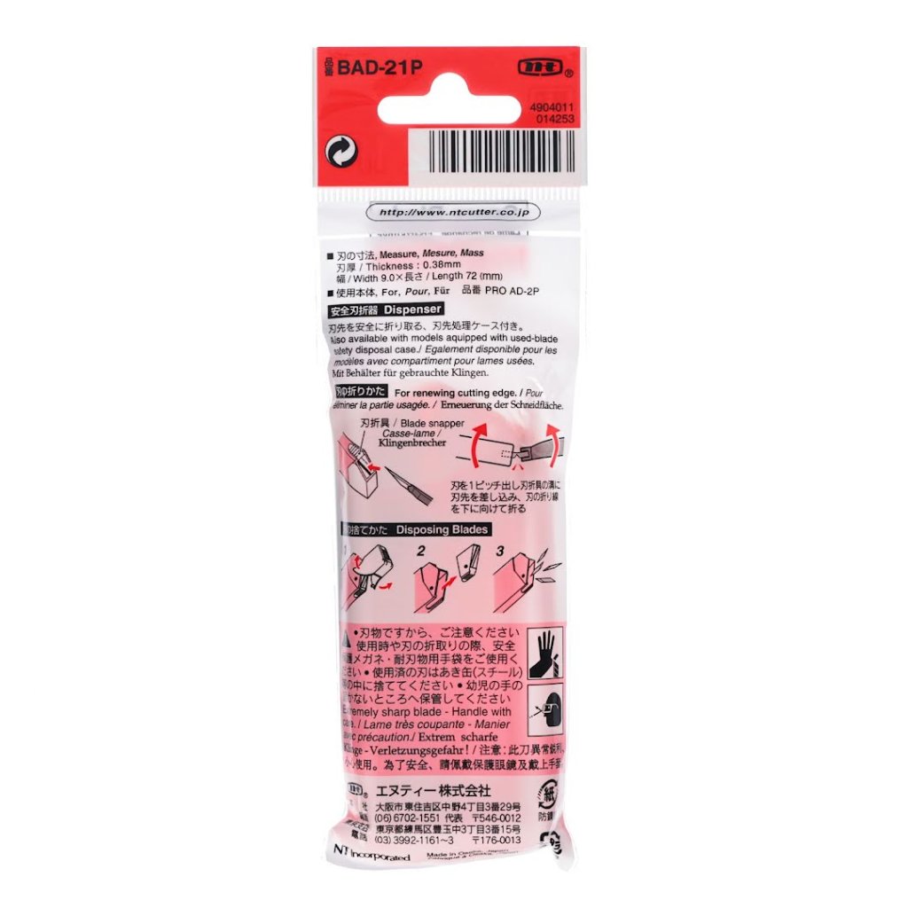 Japonské náhradní čepele pro odlamovací nůž NT CUTTER - typ A - BAD-21P