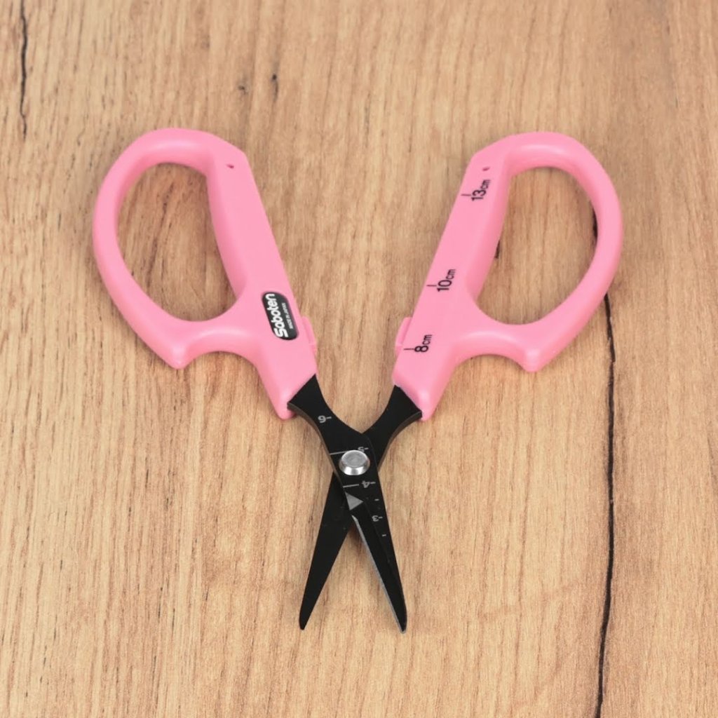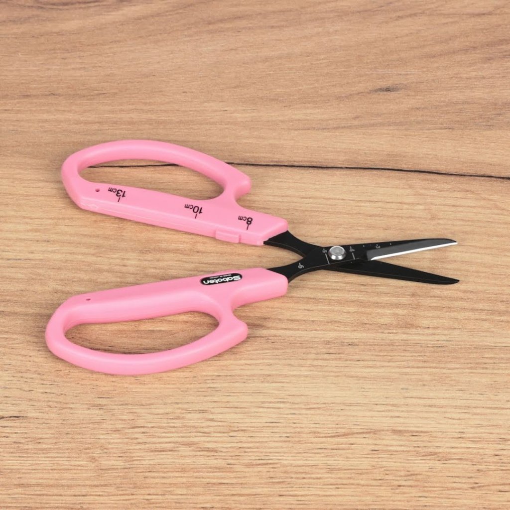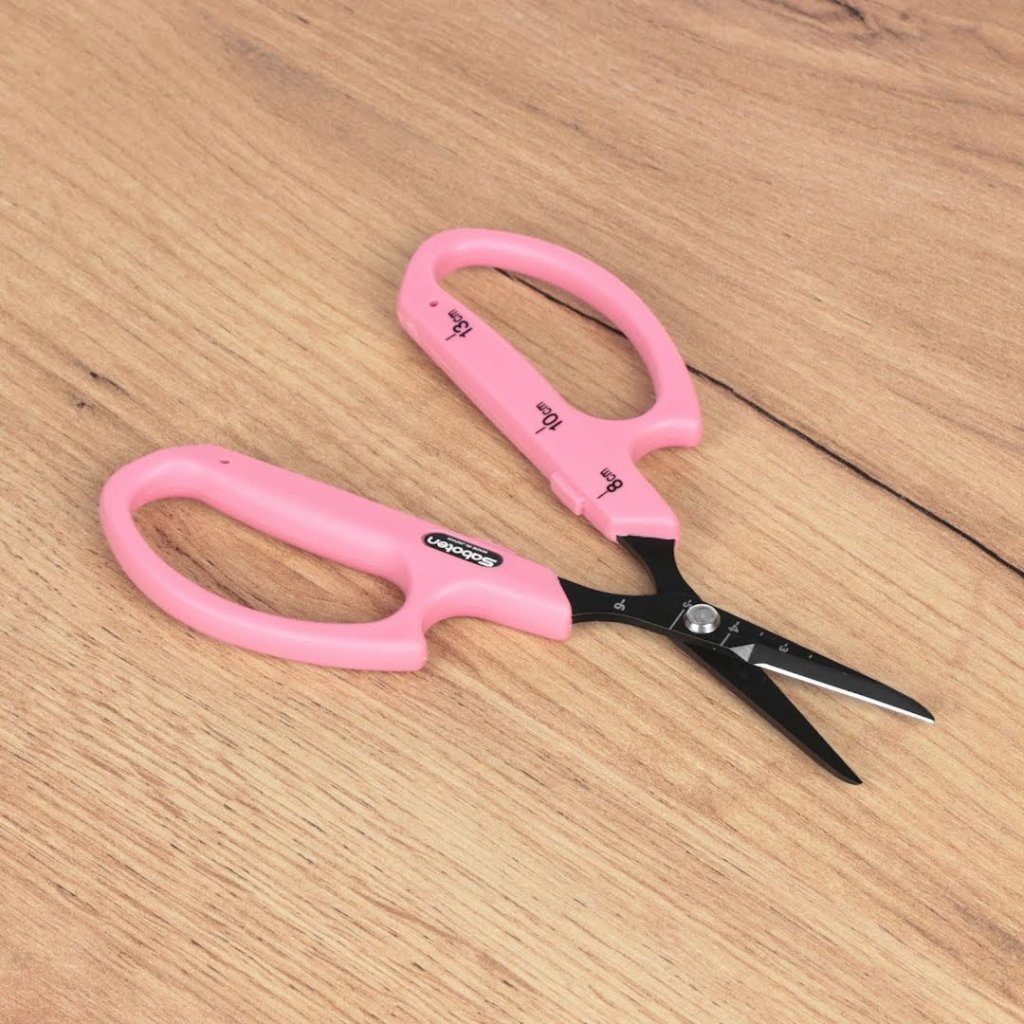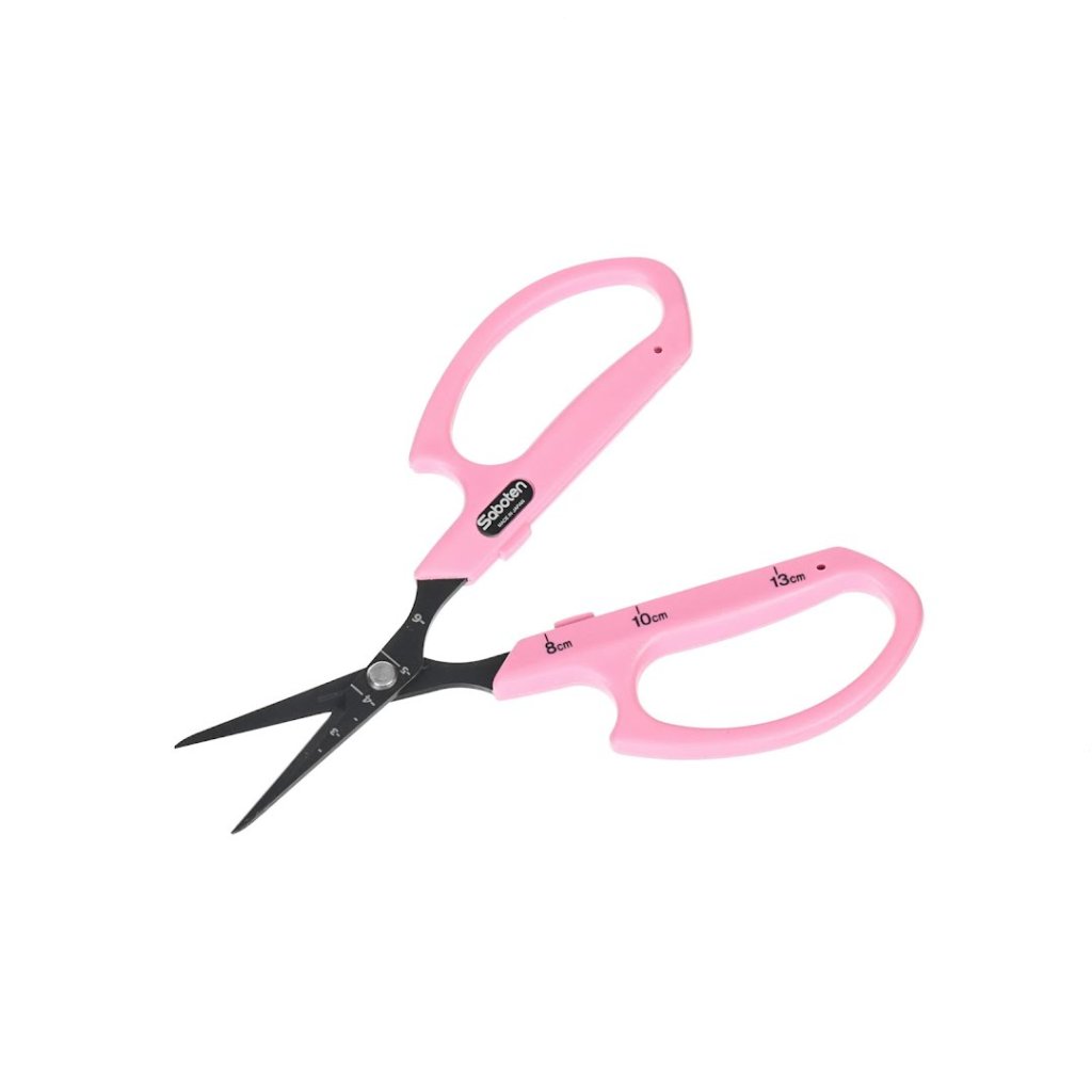 Japonské nůžky SABOTEN, model B-1FP, jsou odborně navrženy pro přesné prořezávání hroznů. Nůžky váží pouze 45 g a jsou vybaveny čepelemi z nerezové oceli s fluorovou povrchovou úpravou, které odolávají usazování šťávy. Rukojeti, vyrobené z měkké pryskyřice, účinně absorbují nárazy a snižují tak zátěž na vaše ruce a zápěstí. Navíc mají čepele zaoblený hřbet, aby se minimalizovalo riziko poškození ovoce.