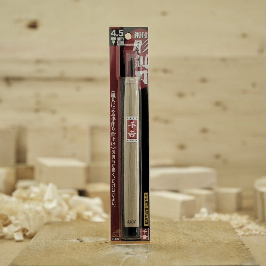 Japonské řezbářské dláto od značky SENKICHI s čepelí o šířce 4,5 mm. Velice ostrá a opětovně brousitelná čepel z bílé oceli Yasuki s vysokým obsahem uhlíku, vysokou životností a vynikající odolností. Brousitelné pomocí japonských vodních brusných kamenů.