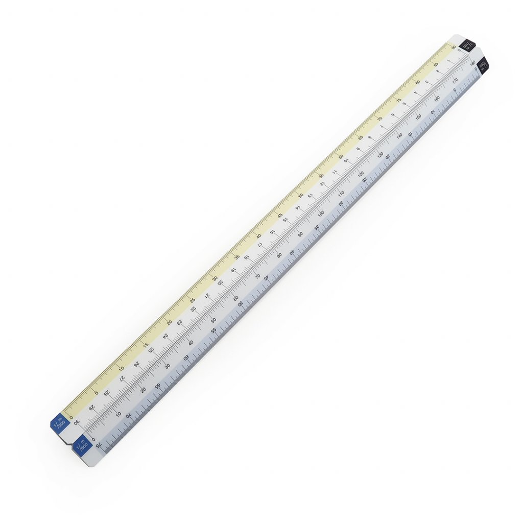 Japonské skládací pravítko s flexibilním tělem pro tvorbu a čtení výkresů, kastrálních map, půdorysů podlaží a dalších. Měřítko 1/100, 1/150, 1/200, 1/250, 1/300, 1/400, 1/500 a 1/600. Délka měřítka 300 mm.