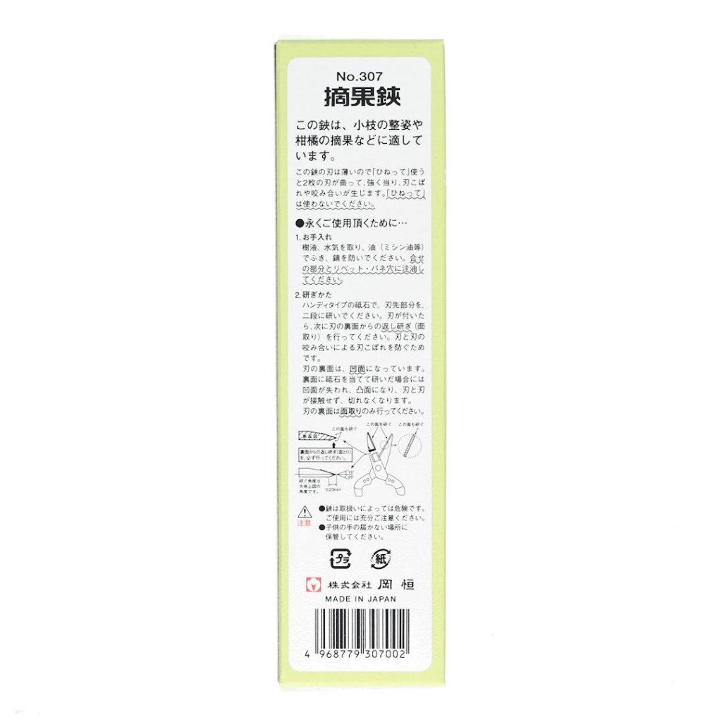 Nůžky na sklizeň ovoce a zeleniny OKATSUNE, model č.307, je profesionální nástroj pro probírku ovoce a sklizeň zeleniny. Vyrobeno z prémiové oceli. Tyto nůžky zajišťují vynikající řezný výkon. Jsou vybaveny pružinovým mechanismem pro snadné použití.