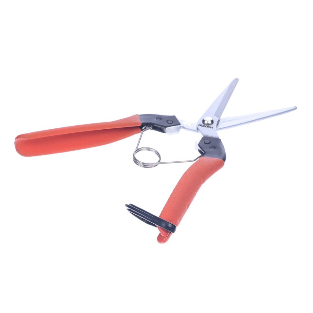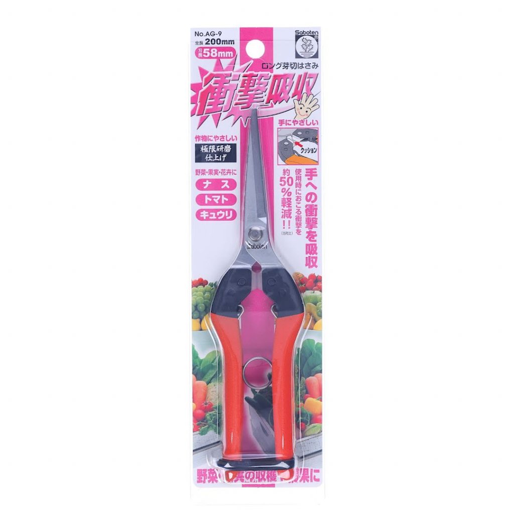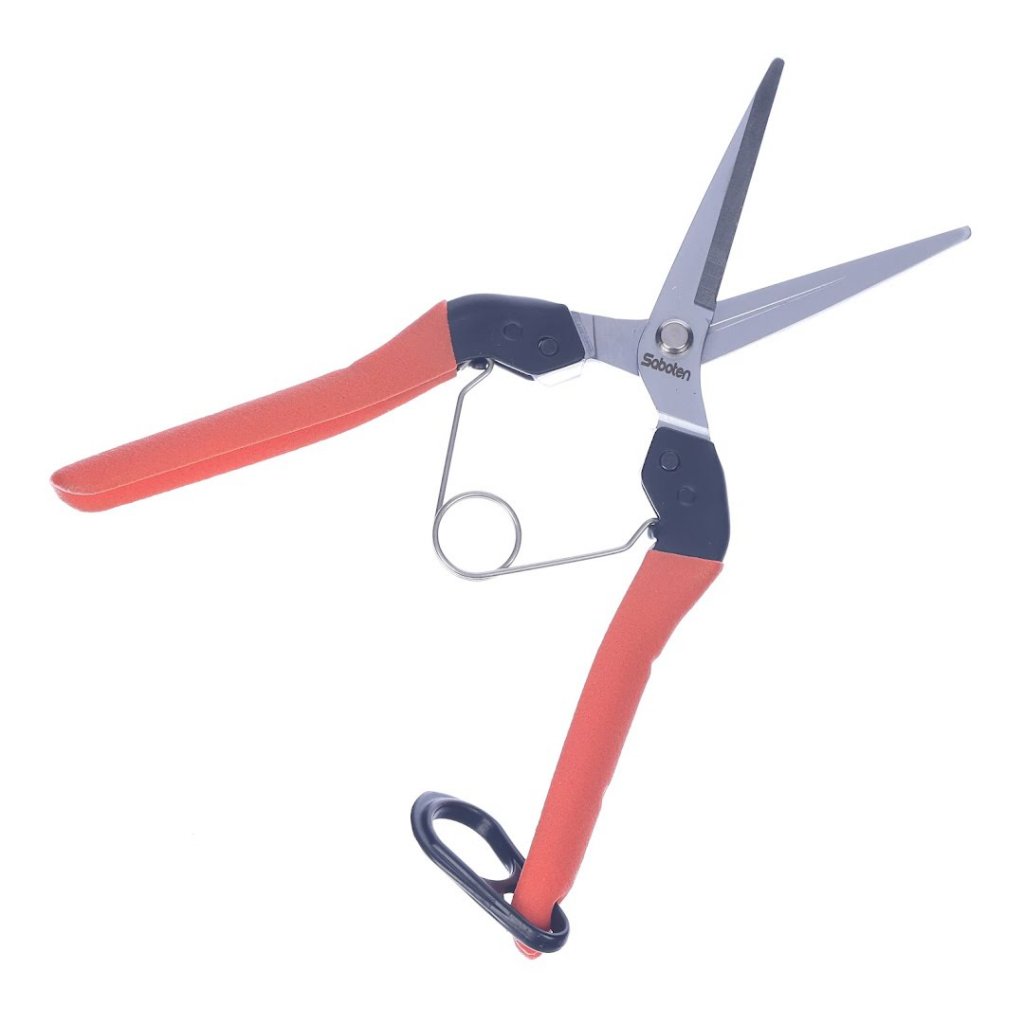 Sklizňové nůžky SABOTEN, model AG-9, jsou navrženy pro snažší sklizeň ovoce a zeleniny. Díky dlouhým tenkým čepelím se dají provádět přesně řezy a nedochází k poškození zpracovávaných plodin. Tvrdá chromová povrchová úprava zajišťuje odolnost a ostrou hranu odolnou proti korozi. Díky lehkému designu a kompaktním rozměrům jsou nůžky lepší pro delší práci při sklizni než klasické zahradnické nůžky.