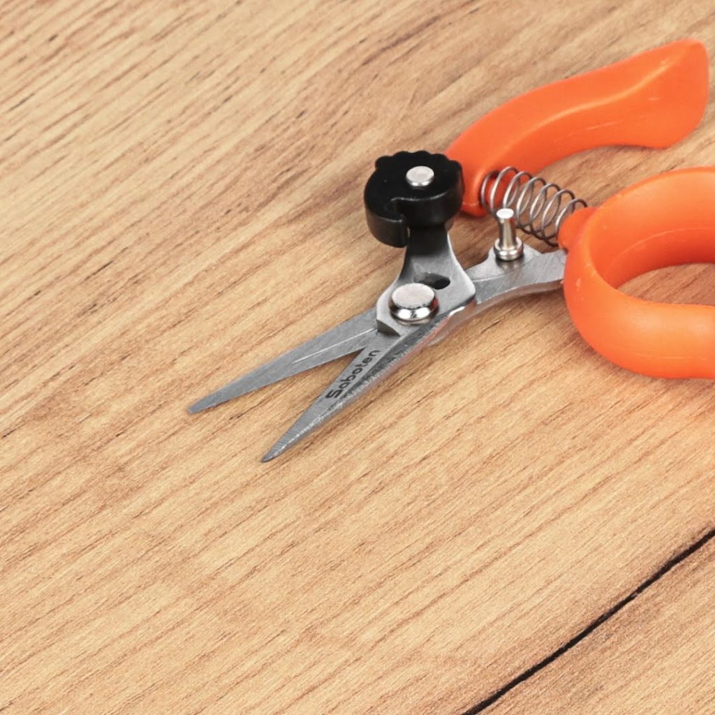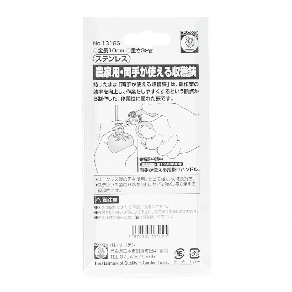 Japonské nůžky na sklizeň SABOTEN, model No.1318S, jsou navrženy pro efektivní sklizňové úkoly. Tyto nůžky jsou vyrobeny tak, aby pohodlně padly do dlaně. Jejich lehký design, vážící pouze 30 g, zvyšuje produktivitu. Vybaveny vinutou pružinou pro snadnější řezání a pojistkou pro jednu ruku. Nůžky usnadňují sklizeň zeleniny a ovoce. Vyrobeno z nerezové oceli, která dodává odolnost vůči rzi.