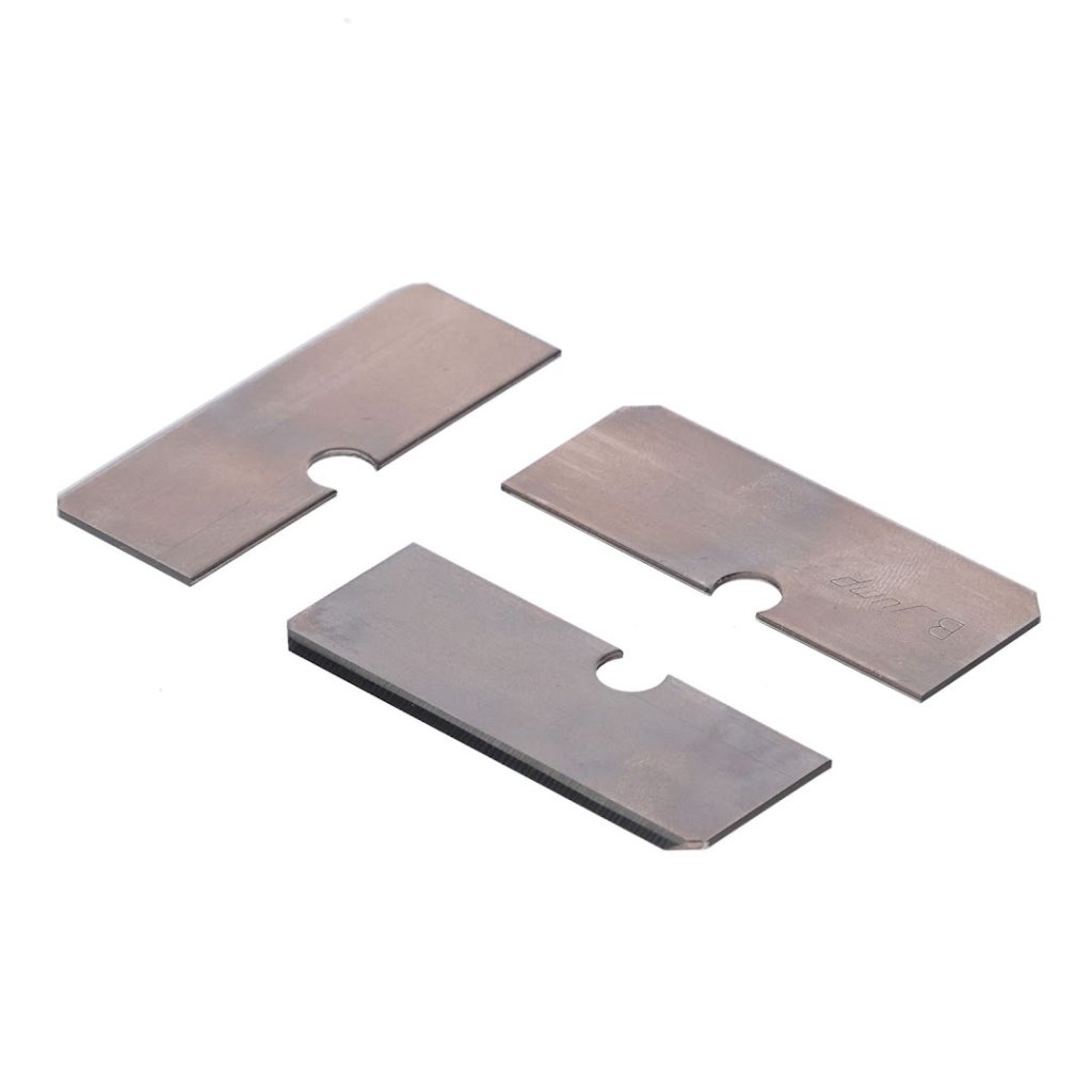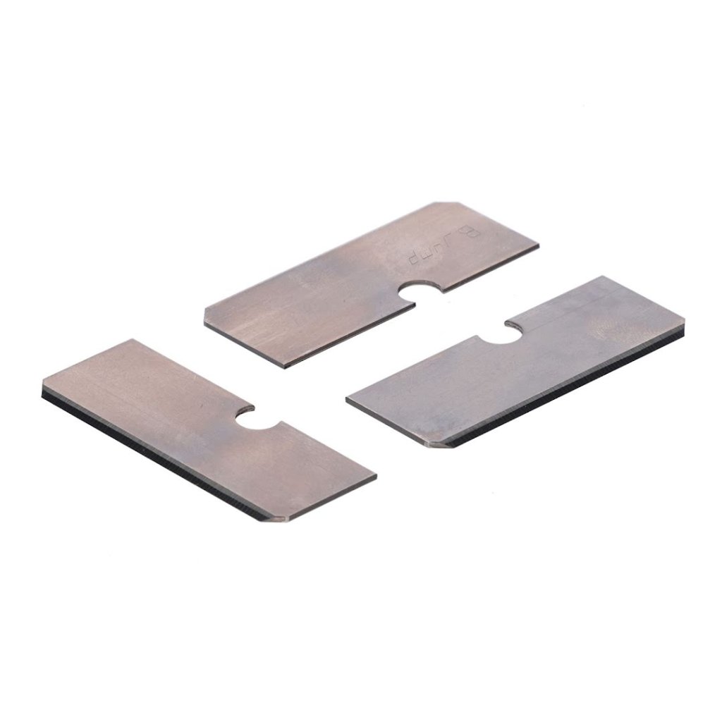 Jedná se o univerzální sadu 3 náhradních čepelí pro ruční hoblíky RAKUDA Mini J50. Tyto čepele o rozměrech 50 mm na šířku a 19 mm na výšku jsou ideální pro srážení hran speciálních materiálů, jako jsou dekorativní lamináty, plasty a hliník do tloušťky 0,5 mm.