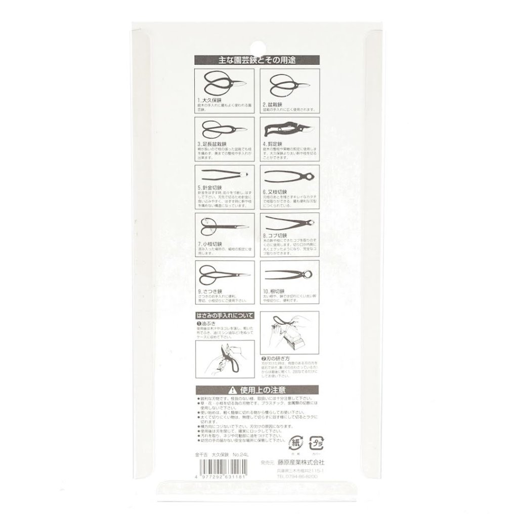 Zahradnické nůžky Kin Okubo od SENKICHI KIN, jsou univerzálnější a jsou navrženy pro různé zahradnické a květinářské úkoly. Mohou být použity na prořezávání větví, řezání květin, sklizeň plodů a jiné zahradnické práce. Oproti typu Koryu mají nůžky Kin Okubo širší a kratší čepele. Celková délka 180 mm a délka čepele 55 mm. Řeže větvě až do průměru 8 mm. Vyrobeno z kvalitní uhlíkové oceli.