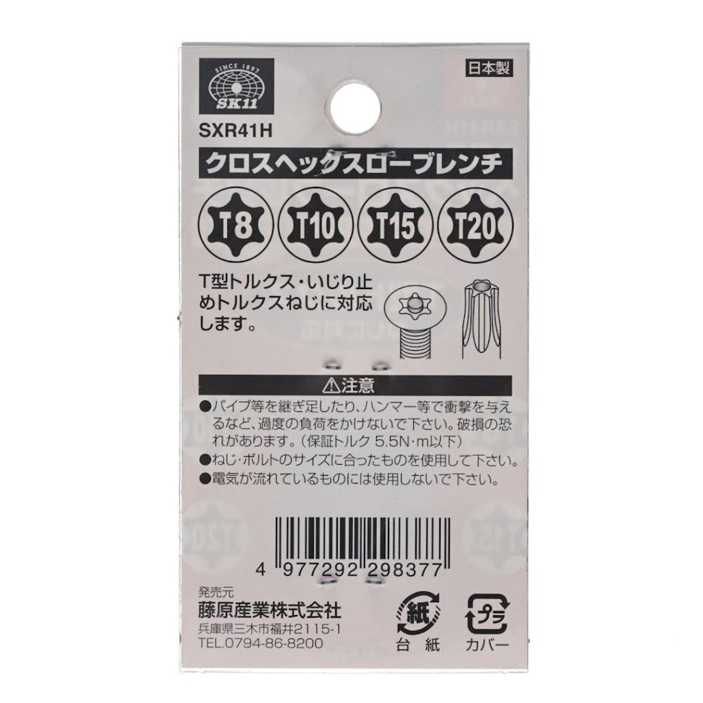 Tento japonský torx klíč značky SK11 , model SXR41H, je všestranný nástroj navržený pro Torx a šrouby s ochranou proti neoprávněné manipulaci. Díky své kompaktní velikosti je snadno přenosný a ovladatelný. Tento nástroj zahrnuje čtyři velikosti: T8, T10, T15 a T20, což z něj činí nezbytný doplněk každé sady nářadí pro utahování a povolování hvězdicových šroubů.