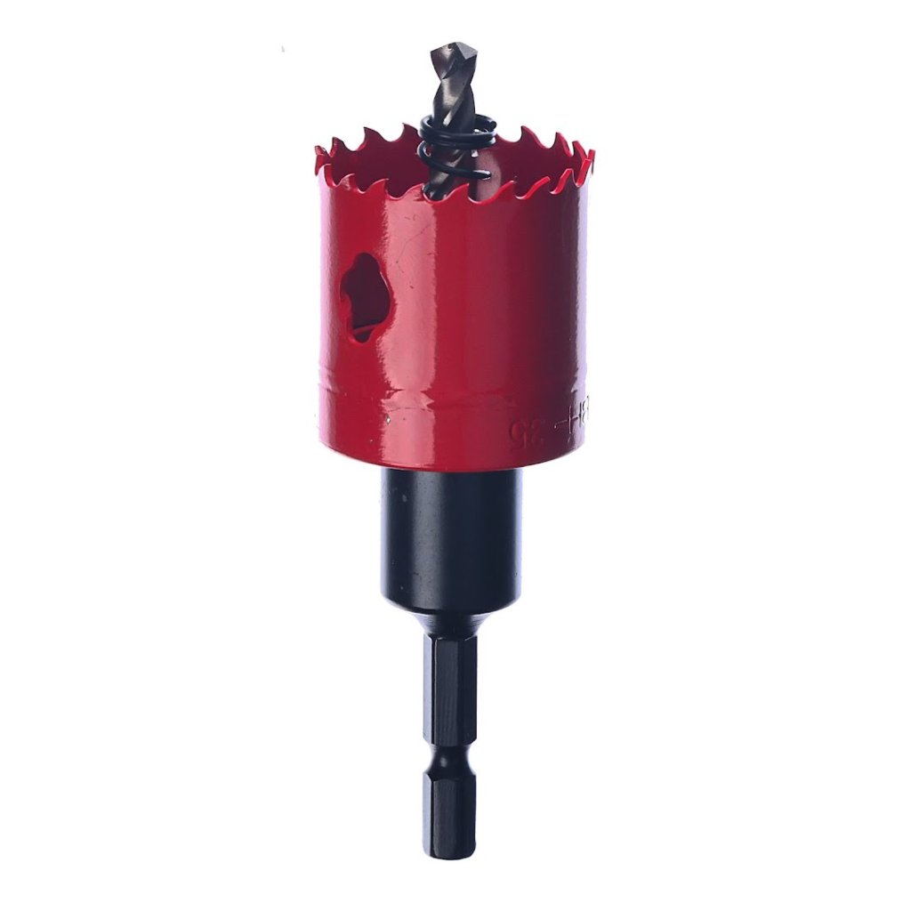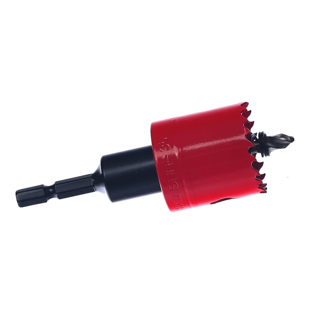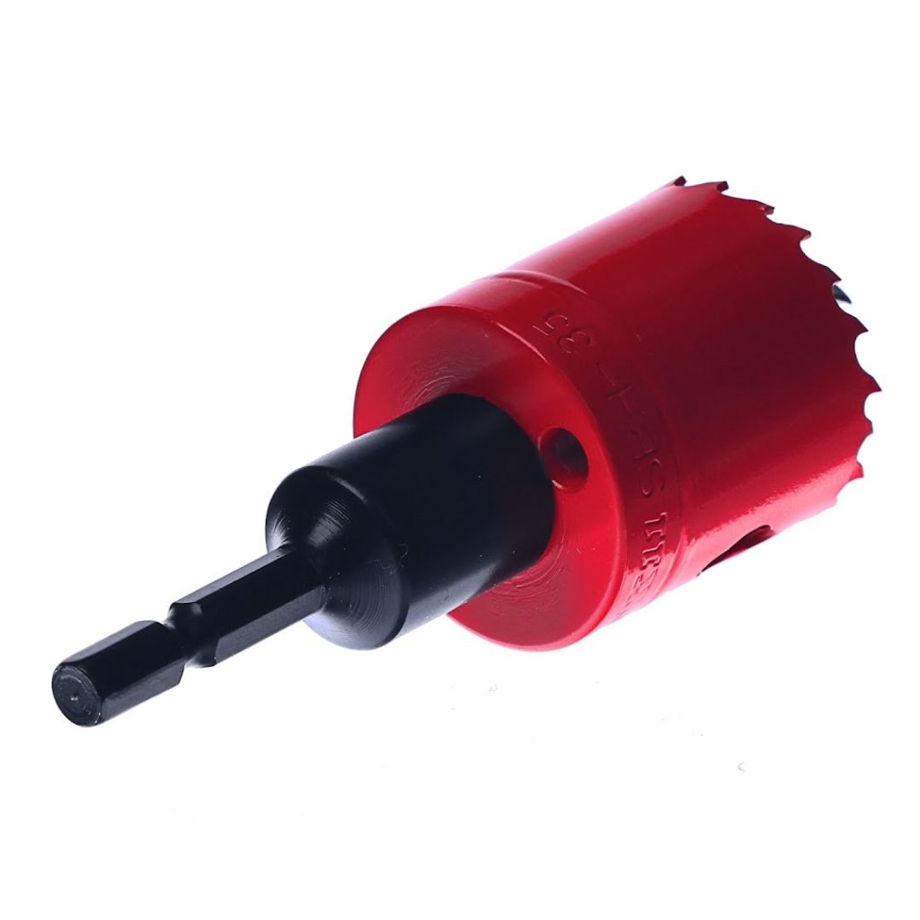 Bimetalový vrták SK11, model SBH-35, je navržen pro efektivní vrtání do různých materiálů, včetně dřeva, PVC a sádrokartonu. Tato 35 mm korunka disponuje břitem z rychlořezné oceli M42 s kobaltem pro výjimečný řezný výkon a odolnost. Její tenký břit 0,8 mm snižuje odpor při řezání, což umožňuje rychlejší vrtání. Navíc pružina středového vrtáku usnadňuje odstranění odpadu po vrtání, čímž zvyšuje celkovou efektivitu. Je vhodná pro použití s elektrickými vrtačkami pracujícími při 600-1200 ot./min.