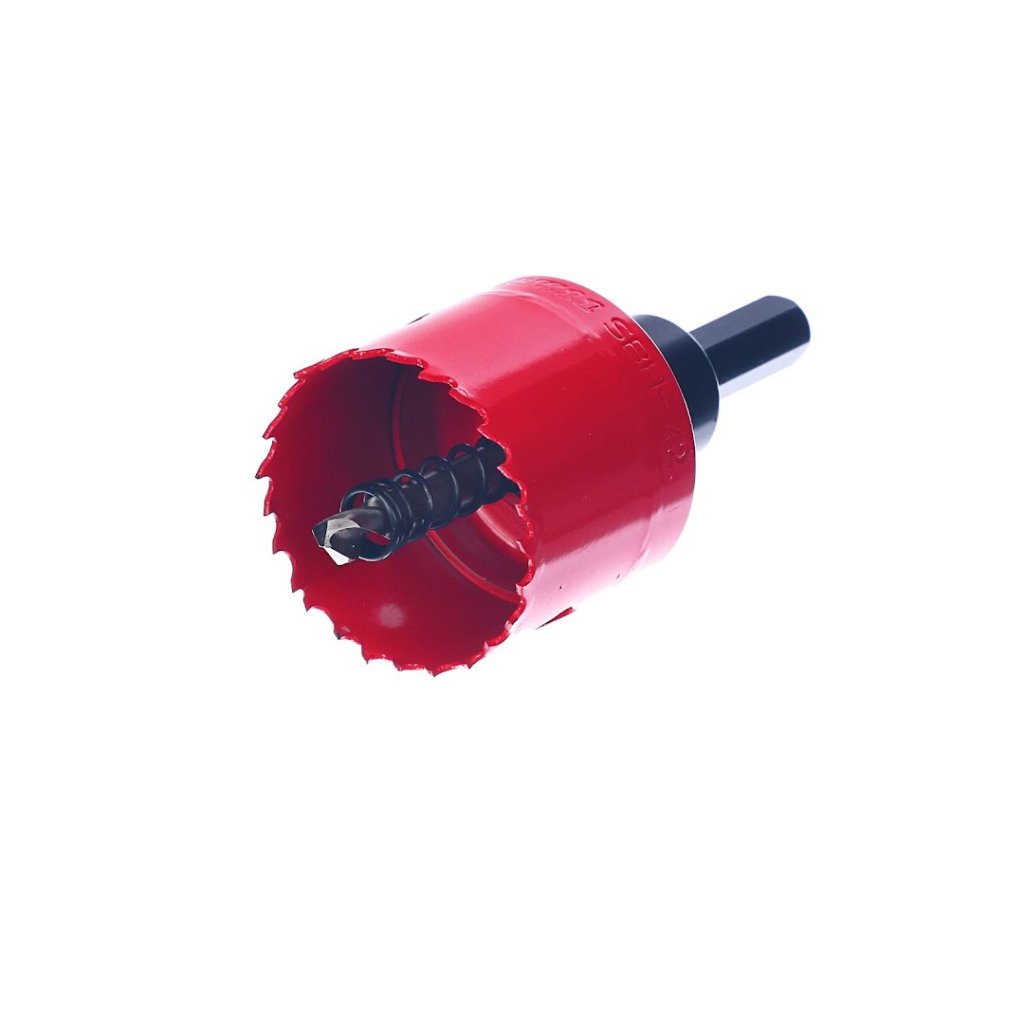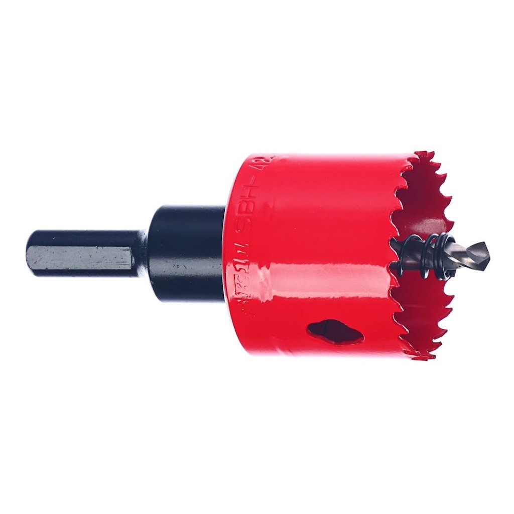 Bimetalový vrták SK11, model SBH-42, je navržen pro efektivní vrtání do různých materiálů, včetně dřeva, PVC a sádrokartonu. Tato 42 mm korunka disponuje břitem z rychlořezné oceli M42 s kobaltem pro výjimečný řezný výkon a odolnost. Její tenký břit 0,8 mm snižuje odpor při řezání, což umožňuje rychlejší vrtání. Navíc pružina středového vrtáku usnadňuje odstranění odpadu po vrtání, čímž zvyšuje celkovou efektivitu. Je vhodná pro použití s elektrickými vrtačkami pracujícími při 600-1200 ot./min.