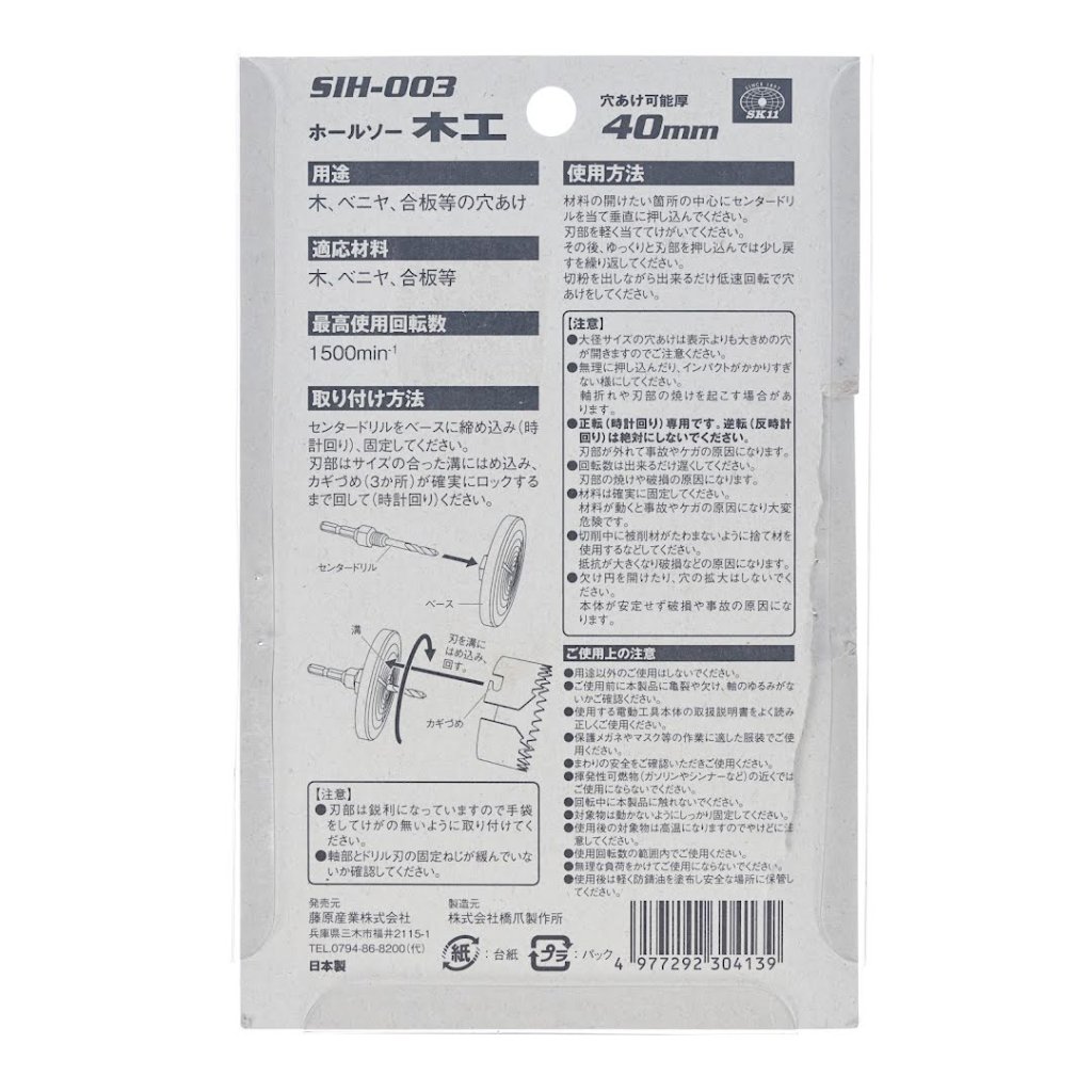 Vrták SK11, model SIH-003, je navržen tak, aby rychle a efektivně vrtal hluboké otvory do dřeva, překližky a kompozitních materiálů. Tento univerzální nástroj lze použít jak s příklepovými vrtačkami, tak s běžnými vrtačkami. Díky šestihranné stopce 6,35 mm a speciálním rychle řezajícím čepelím nabízí spolehlivý výkon s průměry otvorů od 32 mm do 65 mm. Čepel je plně kalená, což zajišťuje odolnost a přesnost.
