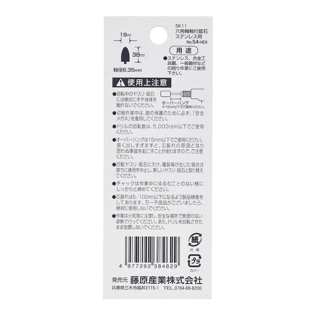 Brusný kámen s šestihranným dříkem SK11 je speciálně navržen pro broušení nerezové oceli. S šestihrannou stopkou o průměru 6,35 mm je vhodný pro použití s aku šroubováky, což zajišťuje stabilní výkon i při nízkých otáčkách. Díky vylepšenému materiálu WA je tento vysoce kvalitní produkt optimalizován pro obecné kovy i odolnější materiály jako je nerezová ocel. Má rozměry 19 mm x 38 mm a váží 35 g, tento stromečkový brusný kámen je nezbytný pro přesné broušení.
