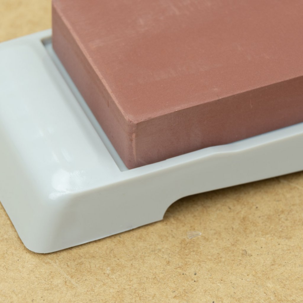 Tímto úchopem posouvejte rovnoměrnými pohyby čepel po celém povrchu kamene zhruba 30x. Na povrchu kamene se začne tvořit tekutina podobná kaši - tuto tekutinu při mezibroušení nestírejte, protože zvyšuje efektivitu brusného procesu. Pokud kámen začne během broušení vysychat, potřete ho opětovně malým množstvím vody.