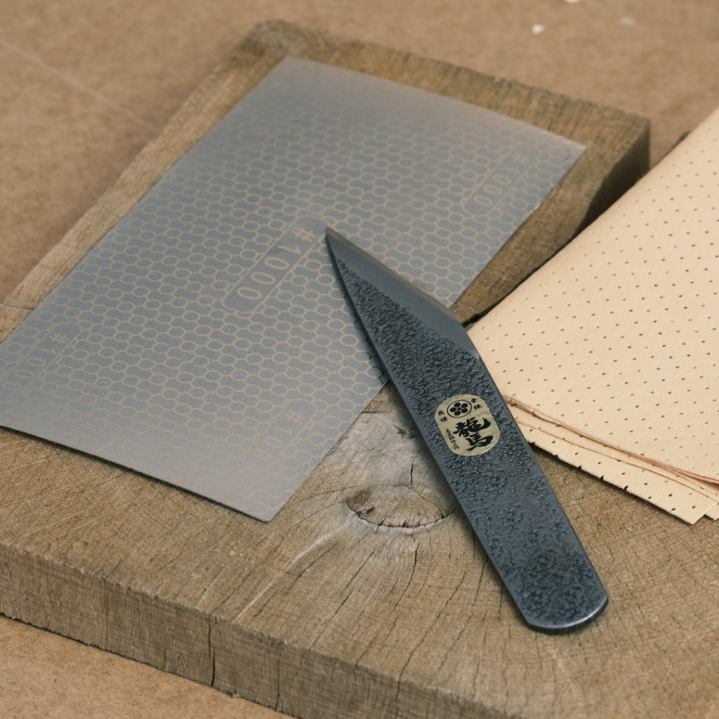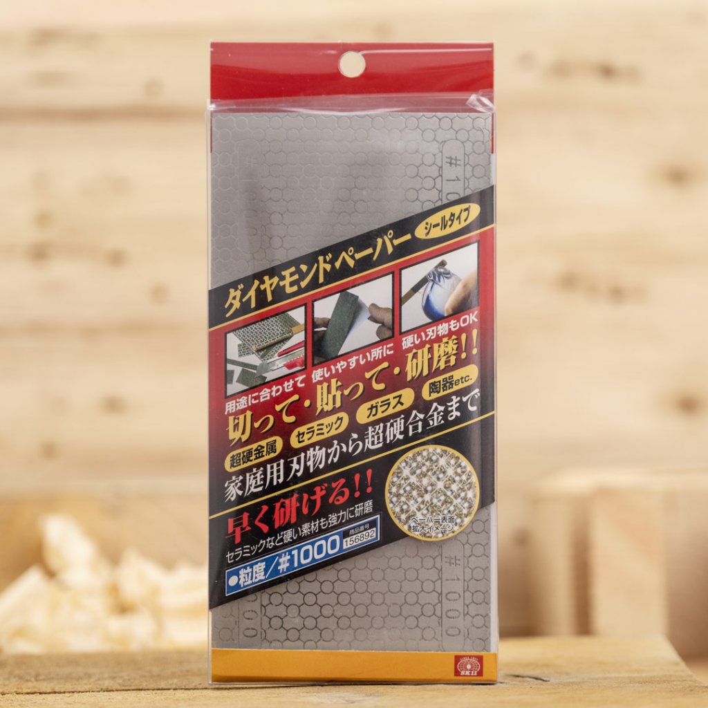 Japonský lepící brusný papír, jehož pomocí lze brousit od čepelí nožů až po slinutý karbid. Zadní strana papíru je lepící - tím lze papír nalepit například na kus dřeva a použít jako provizorní brousek či brusný kámen. Velikost 200 x 100 x 1 mm. Hrubost #1000 JIS.