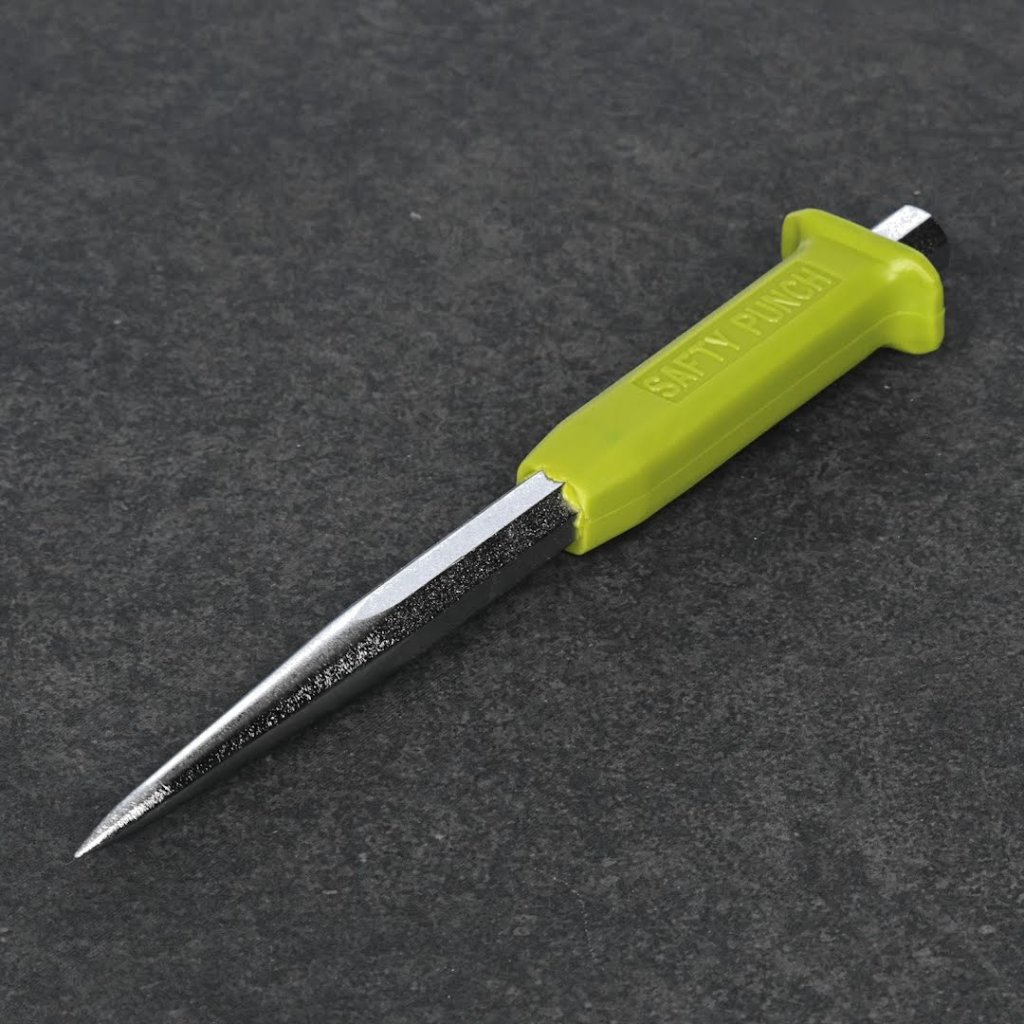 Japonský důlčík SK11, model BP-165, je navržen pro přesné děrovací úkoly, jako je vytváření otvorů pro hřebíky v plechu nebo otevírání sprejových nádob. Jeho měkká PVC rukojeť zajišťuje pohodlné uchopení a zabraňuje kutálení na povrchu. Tento nástroj je vybaven bezpečnostní rukojetí pro ochranu prstů a chromovaným povrchem pro zvýšení odolnosti. Díky vysokofrekvenčnímu tepelnému zpracování odolává náročnému použití, což z něj činí vynikající doplněk do každé sady nářadí.