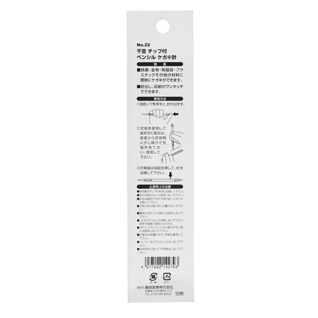 Rýsovací nástroj SENKICHI, model č.22, je navržen pro přesné značení na různých materiálech. Obsahuje karbidovou jehlu pro vynikající odolnost a může snadno značit ocel, kov, keramiku a plast. Mechanismus na jedno stisknutí umožňuje rychlé vysunutí a zasunutí jehly, což usnadňuje skladování. Díky designu ve stylu tužky je tento nástroj vhodný pro detailní rýsovací úkoly.