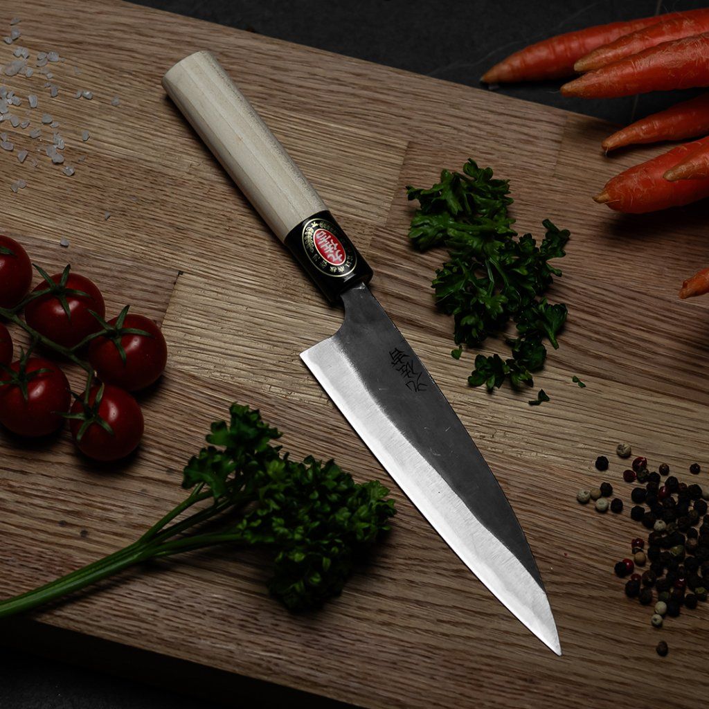 Všestranný kuchyňský nůž od značky UMEBACHI RYUMA má čepel dlouhou 120 mm a je ideální pro krájení ryb a masa. Nevhodné na tvrdé a zmazené potraviny. Vyrobeno v Japonsku.