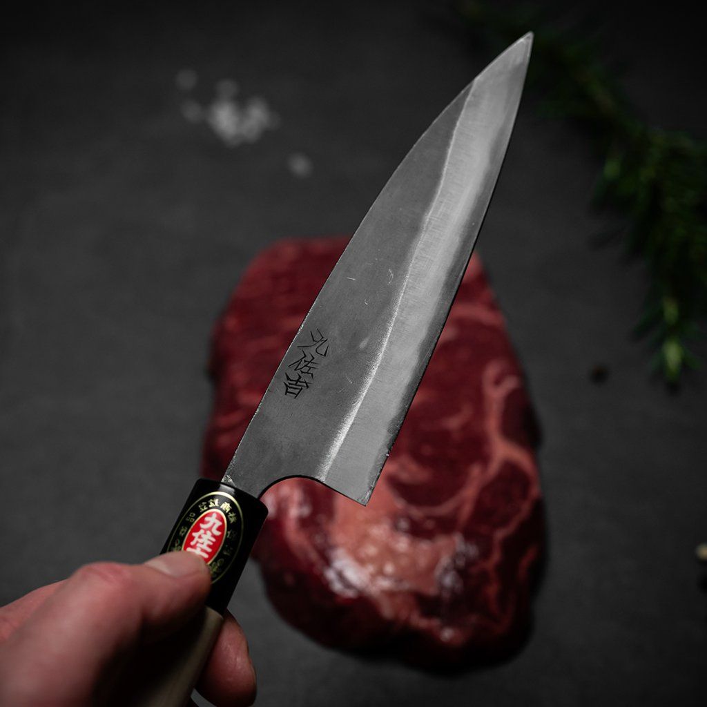 Černý kovaný nůž Funayuki od KYUSAKICHI je pečlivě zpracovaný kuchyňský nástroj, který zlepší vaše kuchařské dovednosti. Každý nůž je individuálně kovaný a kalený pro bezkonkurenční kvalitu s délkou čepele 145 mm. Je vyroben pomocí unikátního procesu, který zahrnuje ocel do charakteristického černého železa Tosan. Oboustranná čepel je navržena pro výjimečnou ostrost a odolnost proti opotřebení. I když není vhodný pro zmrazené potraviny, protože by mohlo dojít k odštípnutí, tento nůž si při správné péči a občasném broušení udrží svou ostrost a odolá korozi. Pro dlouhou životnost je důležité po každém použití nůž ošetřit olejem, aby se předešlo korozi. S hmotností pouhých 80 g, je nůž lehký a vyvážený pro delší používání.